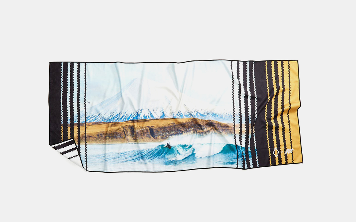 Included in the collection are a surfer braving frigid swells off Alaska’s Aleutian Islands, a hiker in Yosemite and bright blue surf. Each towel is made from 100% recycled bottles, measures in at 30″ X 72.5″, and doubles as a yoga towel, thanks to Nomadix’s anti-slip tech. The polyester/nylon mix means these towels will dry four times quicker than a standard cotton towel.