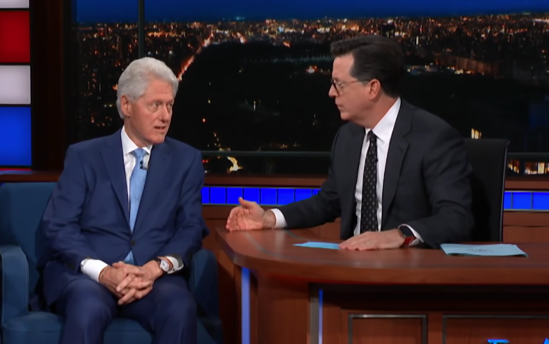 Late-night comedian Stephen Colbert had author James Patterson and Bill Clinton on his Late Show Tuesday night as part of a joint book tour the two are taking around the country. But he wasted no time asking the former president persistent and hard questions about his widely criticized response earlier this week to questions about the way he handled the Monica Lewinsky scandal during his time in office.