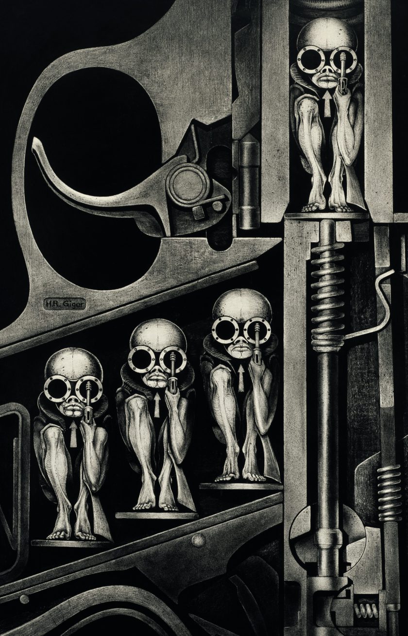 Giger had been a successful as a surrealist painter before he worked in the film industry. The Swiss artist would keep a sketchbook next to his bed, drawing the night terrors that afflicted him. Though his mediums varied widely, his aesthetic was steadfast: a blend of industrial and the quasi-demonic, which Giger referred to as “biomechanic.”