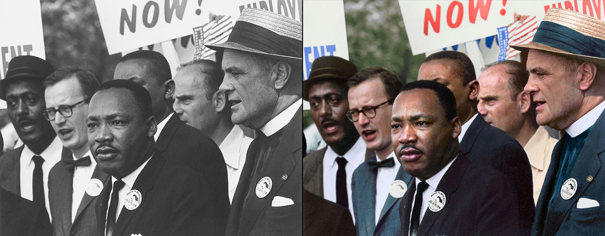 The work is primarily done in Photoshop, and each photo accumulates hundreds of layers that capture not only accurate coloring, but tone and mood as well. Much of her work often focuses on historic images of conflict, whether they’re soldiers, portraits of activists like Martin Luther King, Jr., or her now-famous colorized images of 14-year-old Auschwitz victim Czeslawa Kwoka.