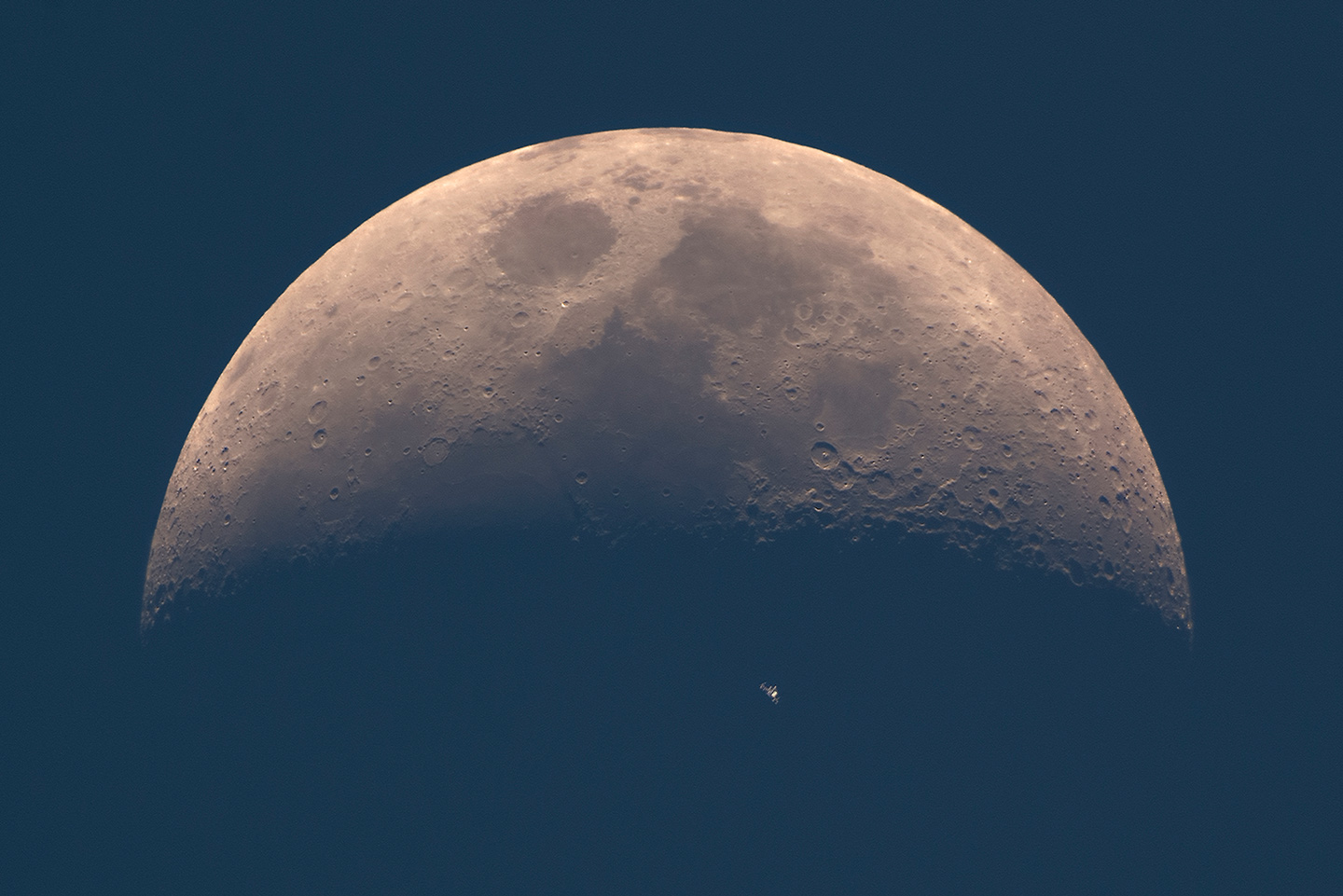 Crescent Moon over the Needles- The 7% waxing crescent Moon setting in the evening sky over the Needles Lighthouse at the western tip of the Isle of Wight. Despite the Moon being a thin crescent, the rest of its shape is defined by sunlight reflecting back from the Earth’s surface. Alum Bay, Freshwater, Isle of Wight, UK (© Ainsley Bennett)