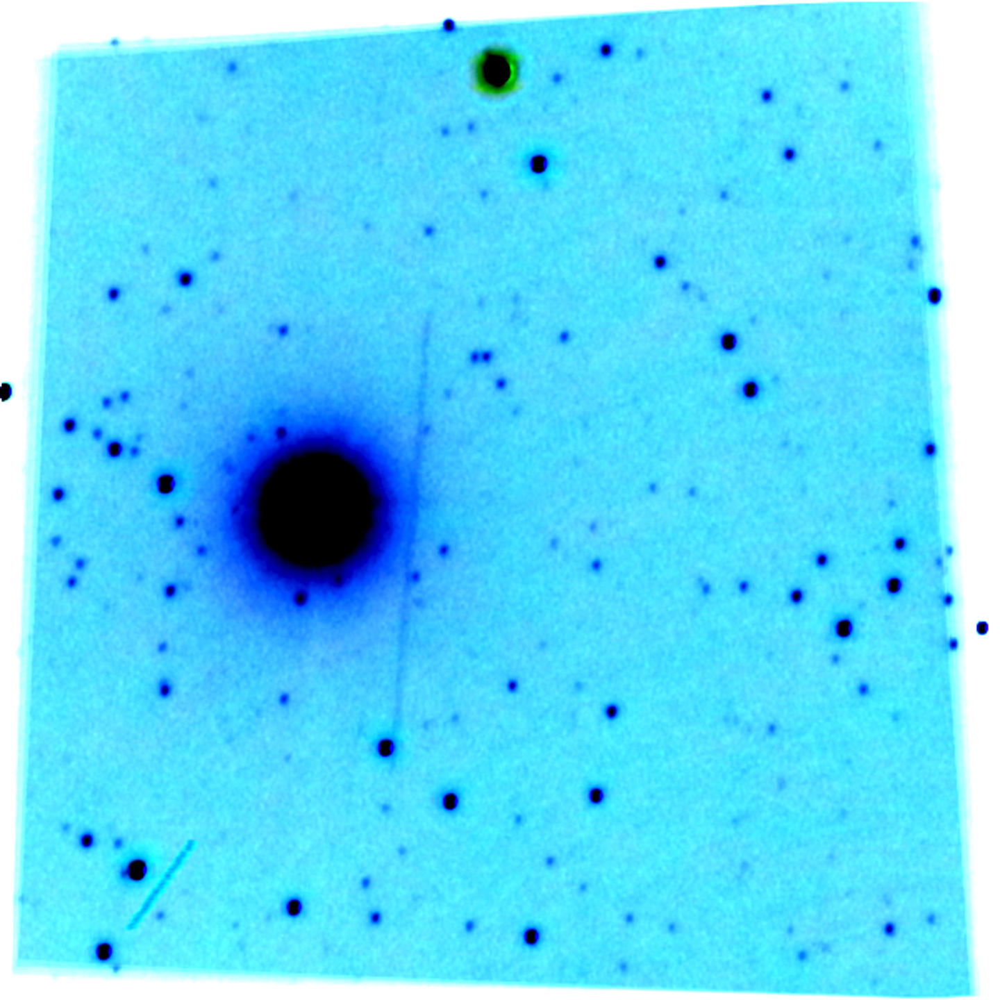 Near Earth Object 164121 (2003 YT1)- On October 31, 2016, Near Earth Asteroid 164121 (2003 YT1) made a close encounter with Earth at 3 million miles. This Apollo asteroid with an orbital period of 427 days was discovered by the Catalina Sky Survey on 18 December 2003. The photographer’s first attempt at imaging the asteroid was done with a camera on a fixed tripod, controlled by Astrophotography Tool software. The asteroid moved so fast I could see it moving on the live screen. The negative image is a stack of 56 cropped images created using PIPP and Deep Sky Stacker software and was processed with IrfanView and Photoshop for scientific content rather than cosmetic appearance. Loughborough, Leicestershire, UK (© Derek Robson)