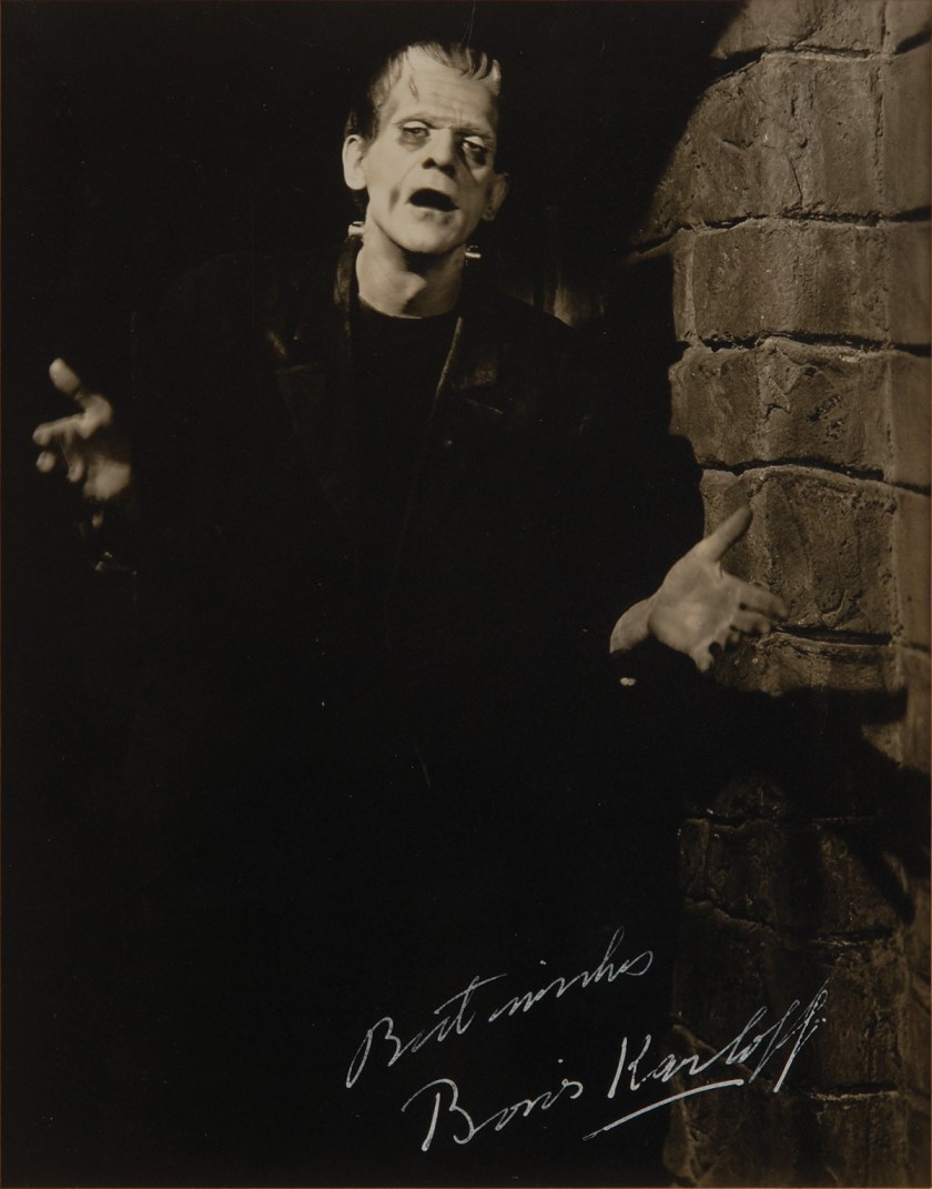 Maybe the best-known names come out of the Golden Age section of the autograph lot. Signed photos include Greta Garbo, James Dean, Wizard of Oz cast members, and even famed horror stars Bela Lugosi and Boris Karloff. (See a number of them below.)