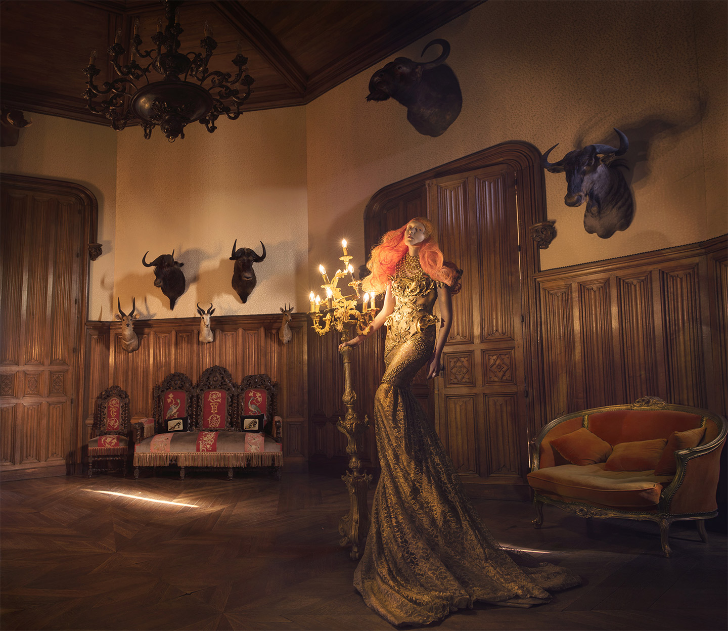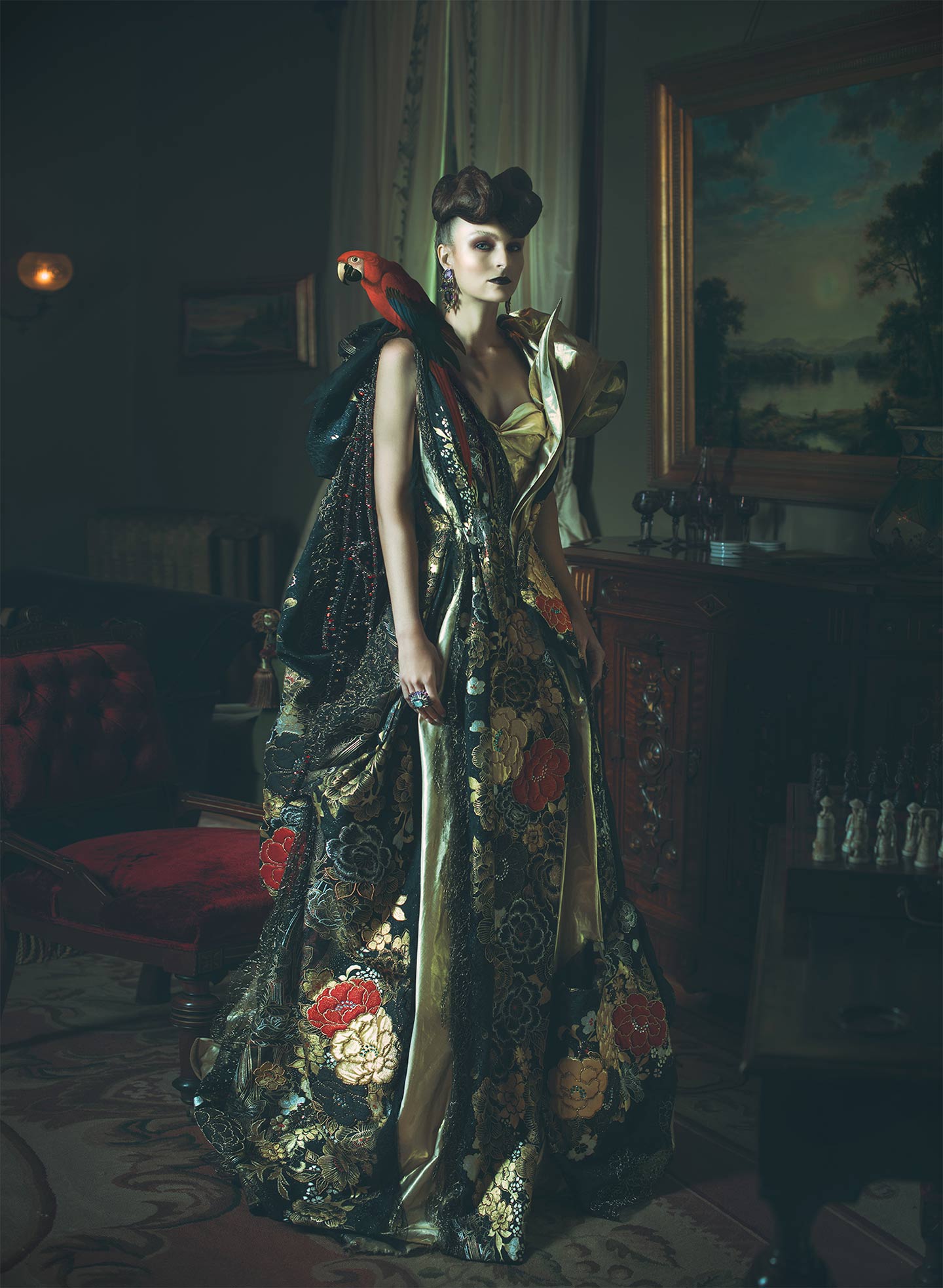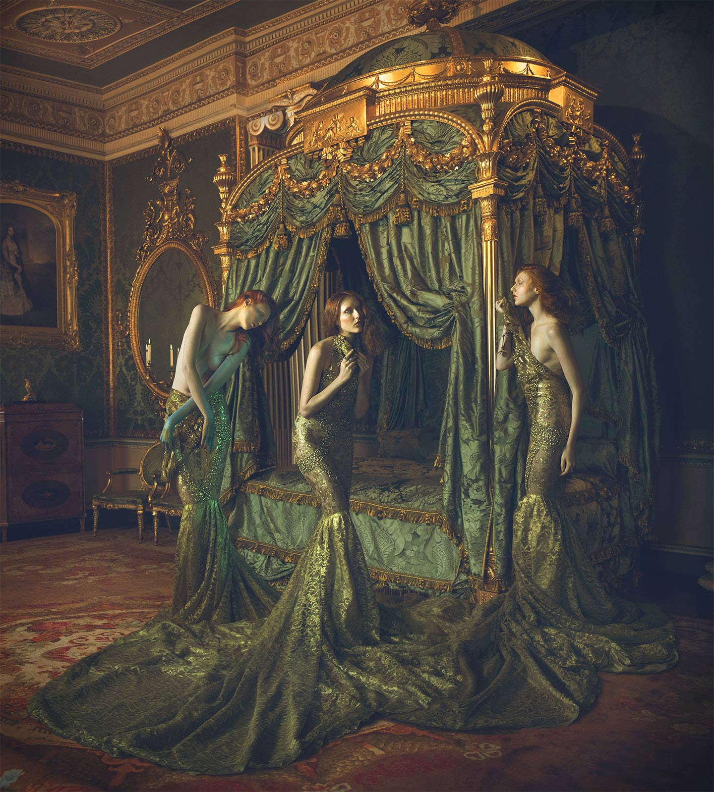 Lennard, who works under the name Miss Aniela, weaves traditional imagery and digitally enhanced motifs into dreamy compositions. “I became inspired by the paintings that were around the actual locations I was shooting the models in: from prop houses in London, which had eclectic, strange, non-descript canvases hanging and laying about; to a stately home in which I did a workshop shoot, where there were magnificent works of art worth thousands of pounds. … I just wanted to somehow capture the magical fascination I felt looking at the paintings,” she said in an interview with My Modern Met.