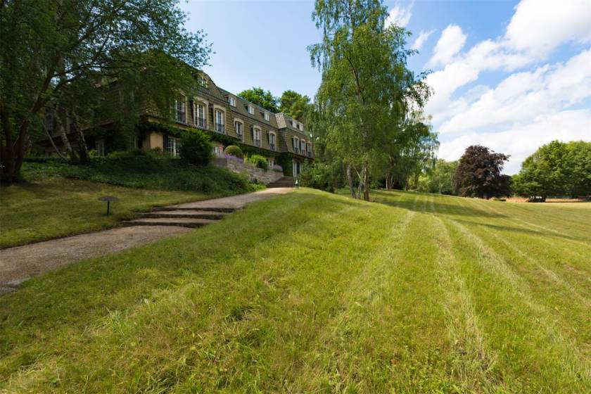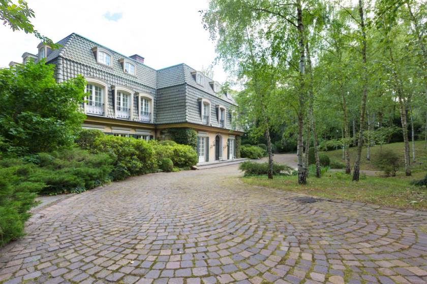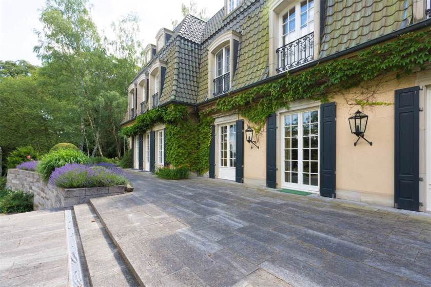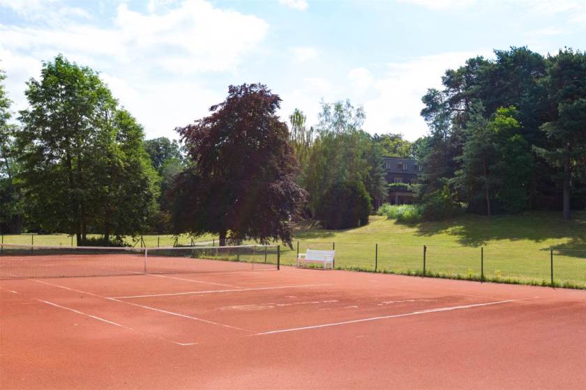 The property’s biggest selling point is its location, which includes views of the Grunewald Tower and the Havel River. Surrounded by an expansive park on a small hill, the villa was nicknamed by the original owner “Tranquillitati” (translation: “dedicated to peace”), and serves as a true bubble of seclusion. At the home’s entrance, old staff quarters have been renovated into a multi-family home. Elsewhere on the lot, you’ll find a tennis court and outdoor pool. It also includes private beach access and its own dock.