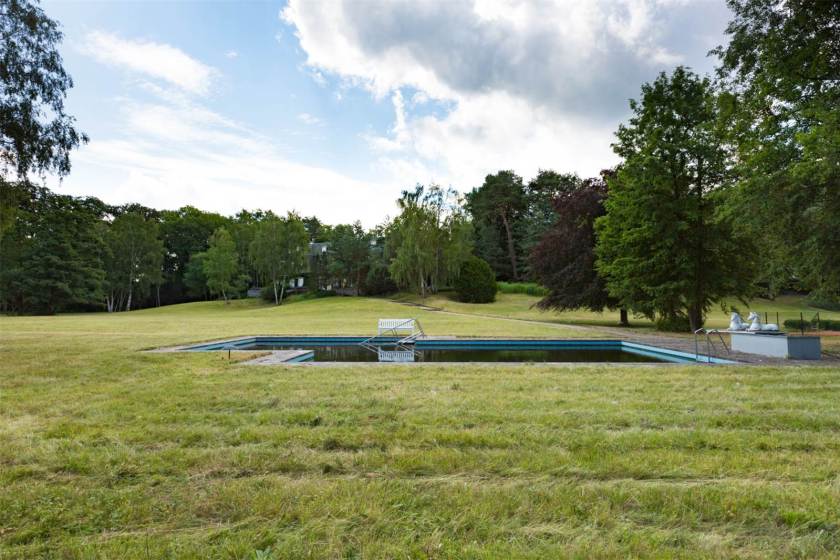 Built in 1978, the home was designed in the style of a sophisticated country house by its former owner, publisher Axel Springer, of Die Welt fame. Prior to Springer, though, the Schwanenwerder home had a much darker history. Many of the city’s Jewish elite resided in the affluent neighborhood during the lead-up to World War II, and were eventually forced to sell their property to the Nazis (or were simply expelled). In the early ’30s, chief propagandist Joseph Goebbels called the island neighborhood home, and it also housed some SS operations. Naturally, at the height of the conflict, much of the island’s buildings were destroyed by Allied Forces. (Prewar buildings on the island are a rarity.)