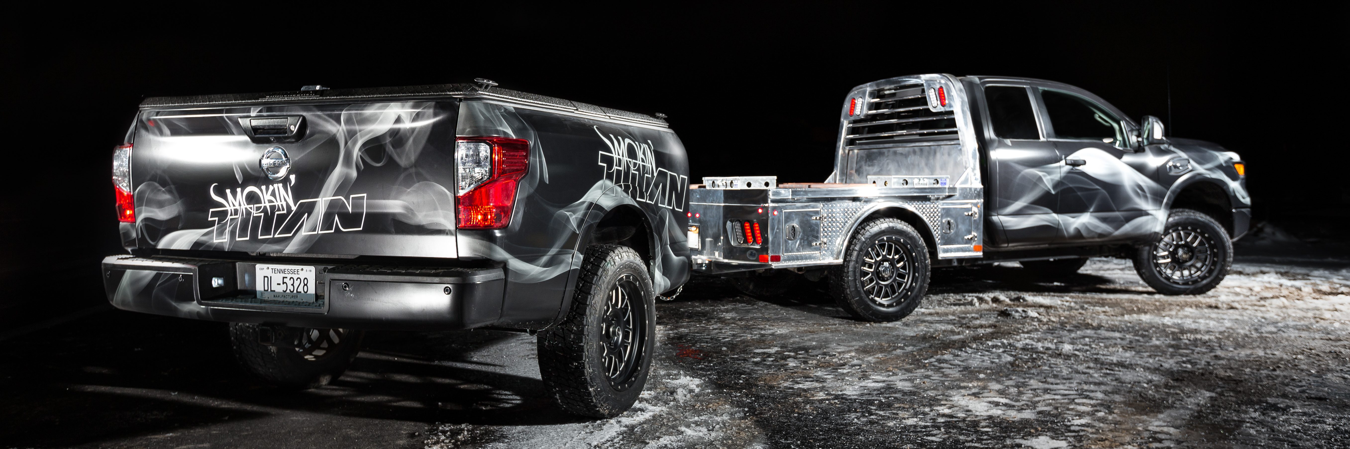 To create the ultimate tailgating machine for the 2018 Work Truck Show, Nissan took a TITAN XD Gas King Cab and outfitted it with a premium audio system, double-burner prep stove, built-in smoker and a pull-behind trailer with storage space for all the fixin’s … pretty much everything but the kitchen sink.
