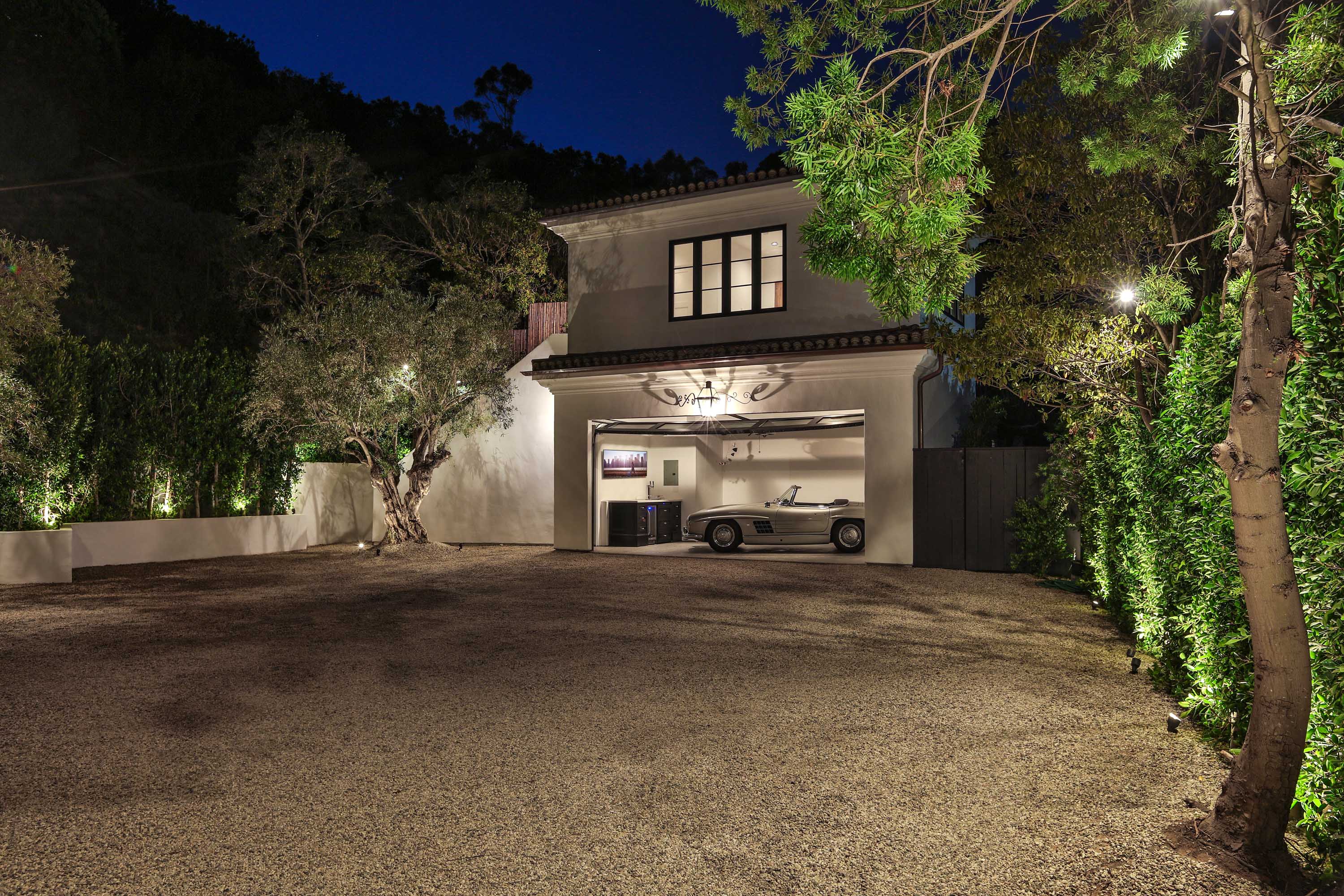 The Spanish Revival-style stucco residence features another historic remnant of the original property: a shower door. As legend has it, Reagan received the phone call he had won the Presidency while he was in the shower (there’s even a plaque commemorating this on the old door, which has now been transferred to the library bathroom). Elsewhere on the property, you’ll find a courtyard with fountains, a modern pool, and lounge area perfect for entertaining guests. With the outdoor kitchen and wood-burning pizza oven, the backyard is ready for al-fresco dinners.