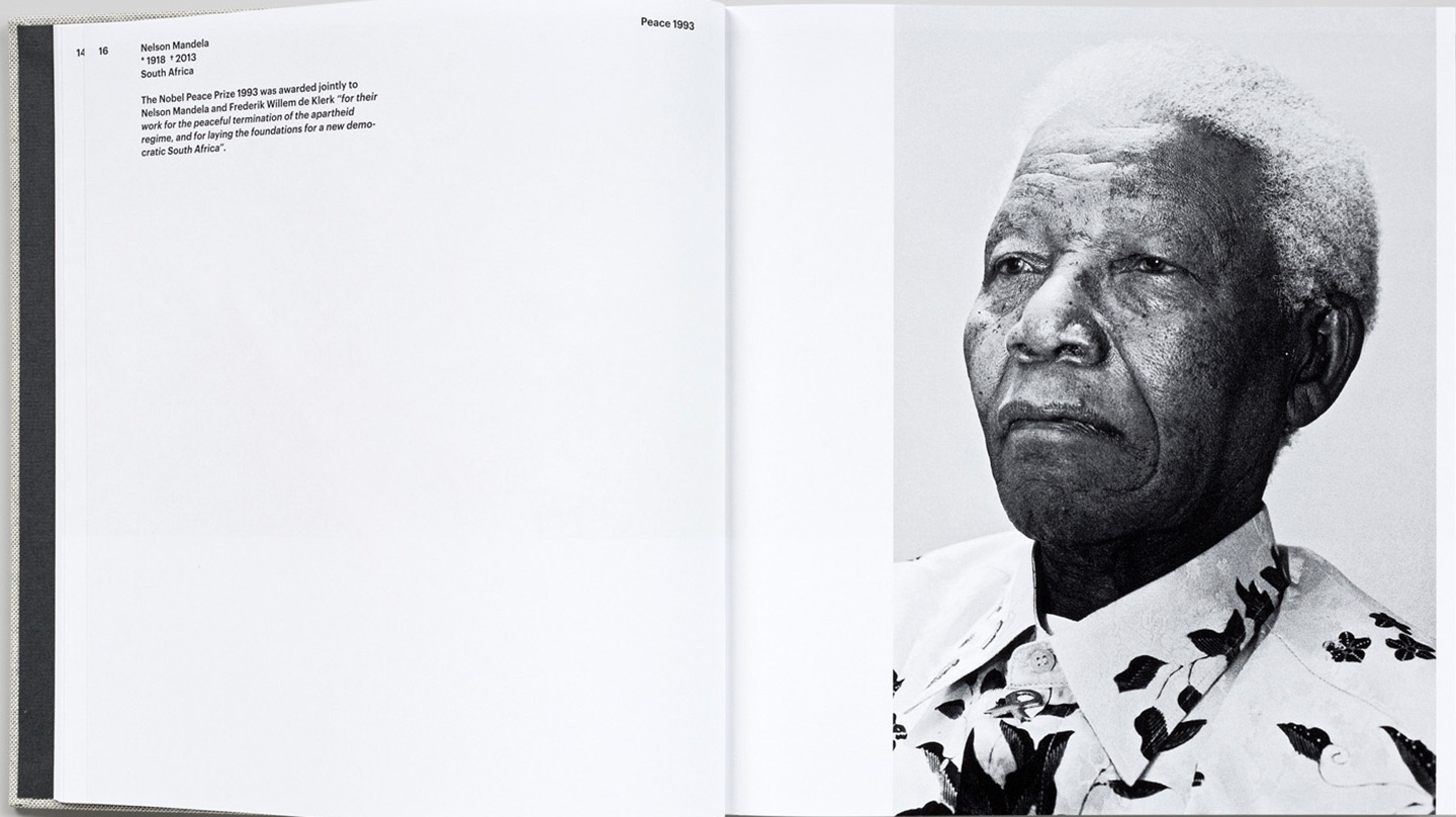 Nelson Mandela: 1918, South Africa. The Nobel Peace Prize 1993 was awarded jointly to Nelson Mandela and Frederik Willem de Klerk “for their work for the peaceful termination of the apartheid regime, and for laying the foundations for a new democratic South Africa”. (Peter Badge/Lindau Nobel Laureate Meetings/Steidl)