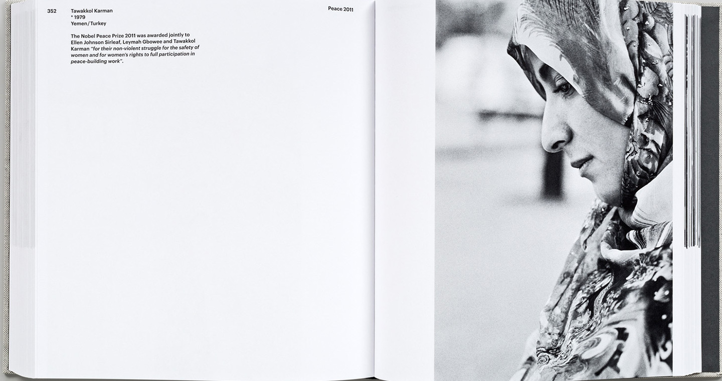 Tawakkol Karman: 1979, Yemen/Turkey. The Nobel Peace Prize 2011 was awarded jointly to Ellen Johnson Sirleaf, Leymah Gbowee and Tawakkol Karman “for their nonviolent struggle for the safety of women and for women’s rights to full participation in peacebuilding work”. (Peter Badge/Lindau Nobel Laureate Meetings/Steidl)