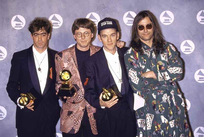 But true worldwide success wouldn’t find them until 1991’s Out of Time, when the band finally pulverized the barrier between the indie and mainstream rock worlds (sort of like what contemporaries Nirvana did the same year with punk music). Shooting to No. 1 on both sides of the Atlantic, the album would spawn monster singles in “Losing My Religion” and “Shiny Happy People,” and go on to sell 18 million copies worldwide. The following year, Out of Time struck gold at the ’92 Grammys, winning “Best Alternative Music Album,” and a pair of statues for “Losing My Religion” (see image above).