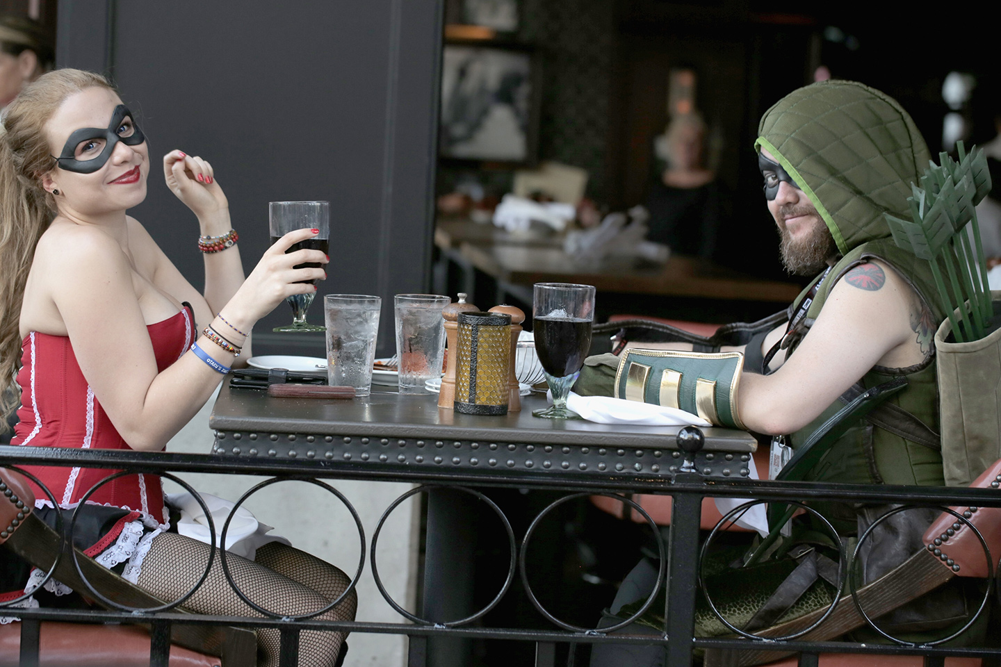 The Green Arrow and his date take a break. (Quinn P. Smith/Getty Images)
