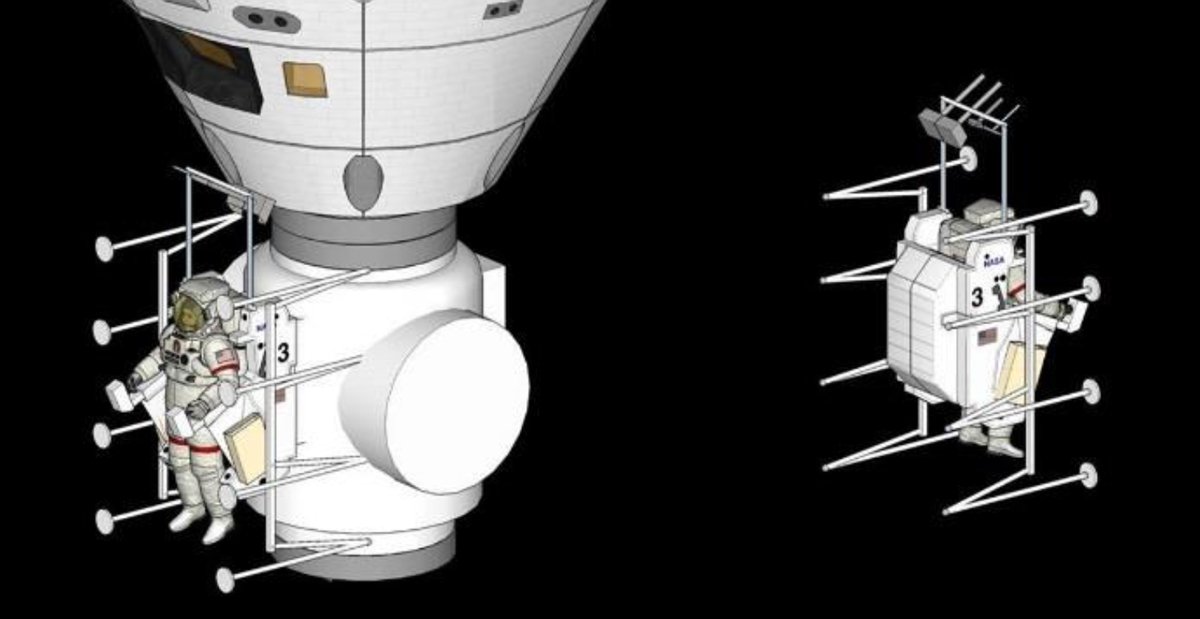 The “Spider Flyer-Walker” suit lets astronauts fly down to the moon’s surface from an orbiting spacecraft and crawl around to carry out the mission. Astronauts would be suspended above the surface, but they could still carry out their duties as they normally would with the assistance of the robotic legs to carry any soil samples collected.