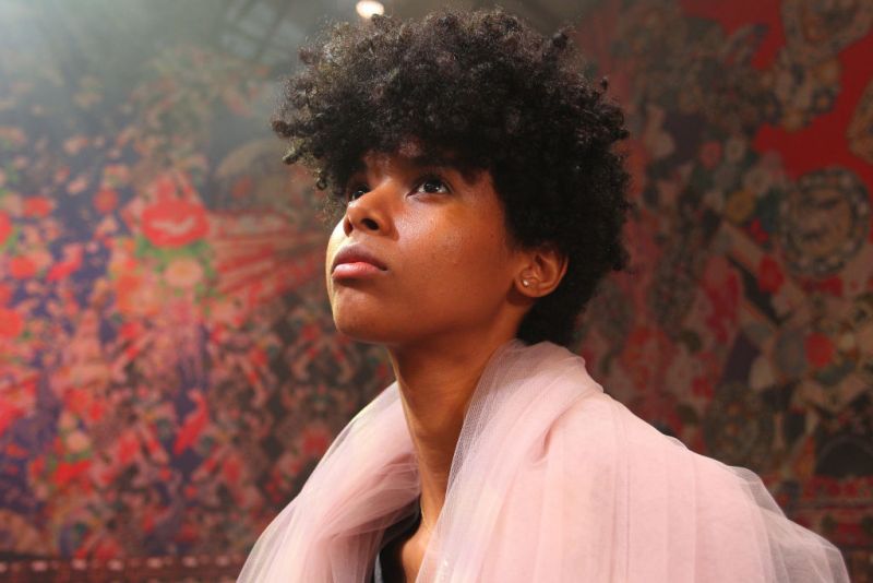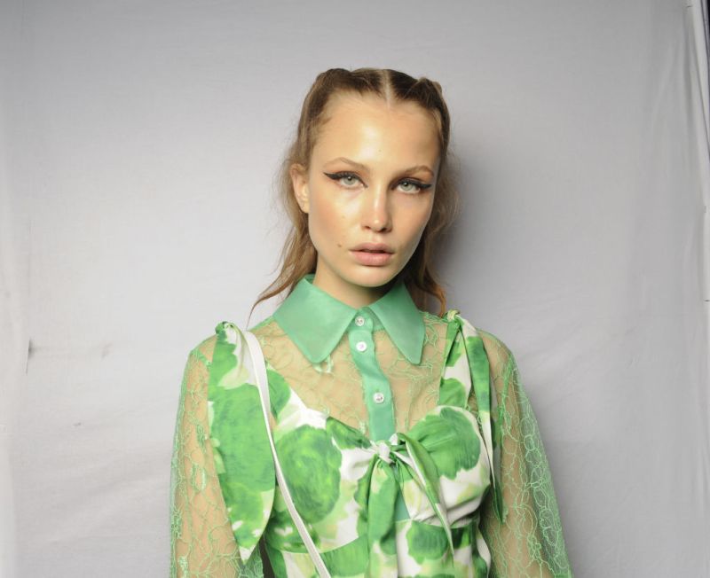 A model prepares backstage ahead of the Matchesfashion.com x Emilia Wickstead show at Mercedes-Benz Fashion Week Resort 19 Collections at Wylie’s Baths on May 15, 2018, in Sydney, Australia.
