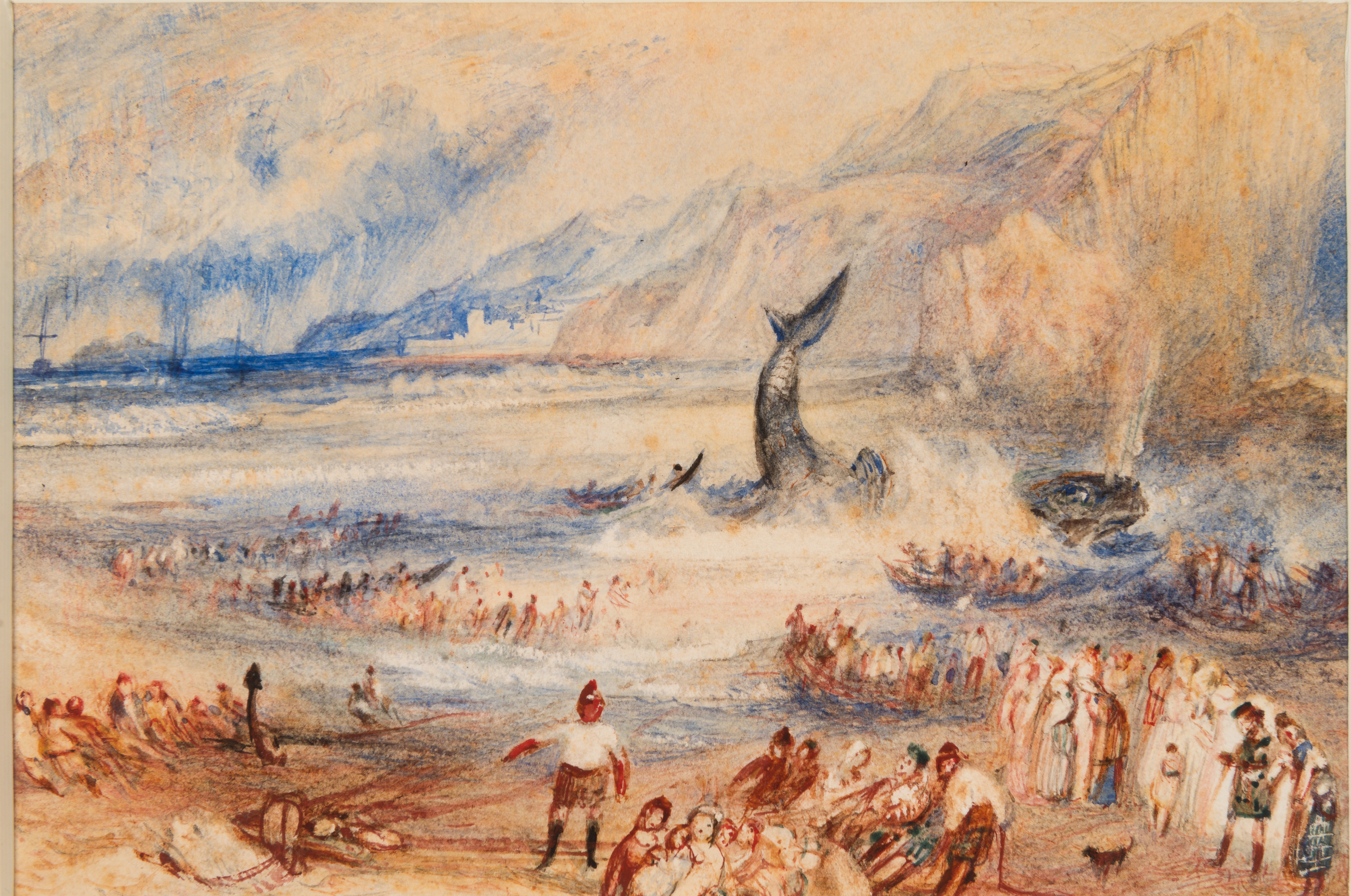In one exhibit for the first time ever, Joseph Mallord William Turner’s four whaling scenes are on display at The Metropolitan Museum of Art. The Met recently obtained three of the British artist’s paintings from the Tate Britain. Turner was often inspired by maritime subjects, and these scenes are some of the last in his career. The works are of particular note for their unusually frenetic brushstrokes, a technique that later only came to be appreciated. In addition to the whaling paintings, The Met is also displaying some of Turner’s watercolors and prints. The exhibition explores the relationship between Turner’s whaling scenes and their influence on Herman Melville’s Moby Dick—since the novel was published in 1851, after the paintings had been on display for several years at the Royal Academy in London. For more information on The Met’s Turner exhibition, which runs until August 7, click here. See a selection of his works below.