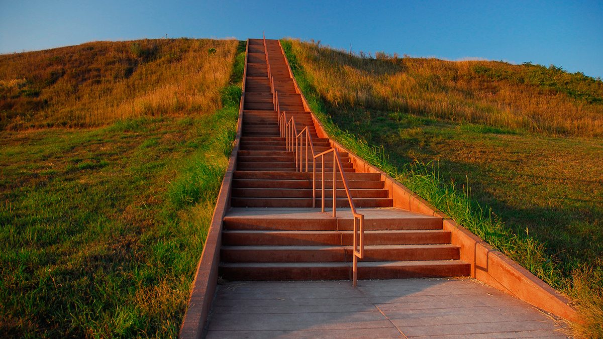 You might be surprised that there are more than a few in the nation, including a particularly important site just across the Mississippi River from St. Louis, Missouri. The Cahokia Mounds (a.k.a. “City of the Sun”) is the site of the “most sophisticated prehistoric native civilization north of Mexico,” according to the State of Illinois. The 2,200-acre plot at one point was a bustling chiefdom society in the Mississippian period (800-1400), including 120 mounds and possibly 10,000–20,000 citizens. Its centerpiece is Monks Mound, “the largest prehistoric earthwork in the Americas,” per UNESCO, which named it a World Heritage site in 1982.