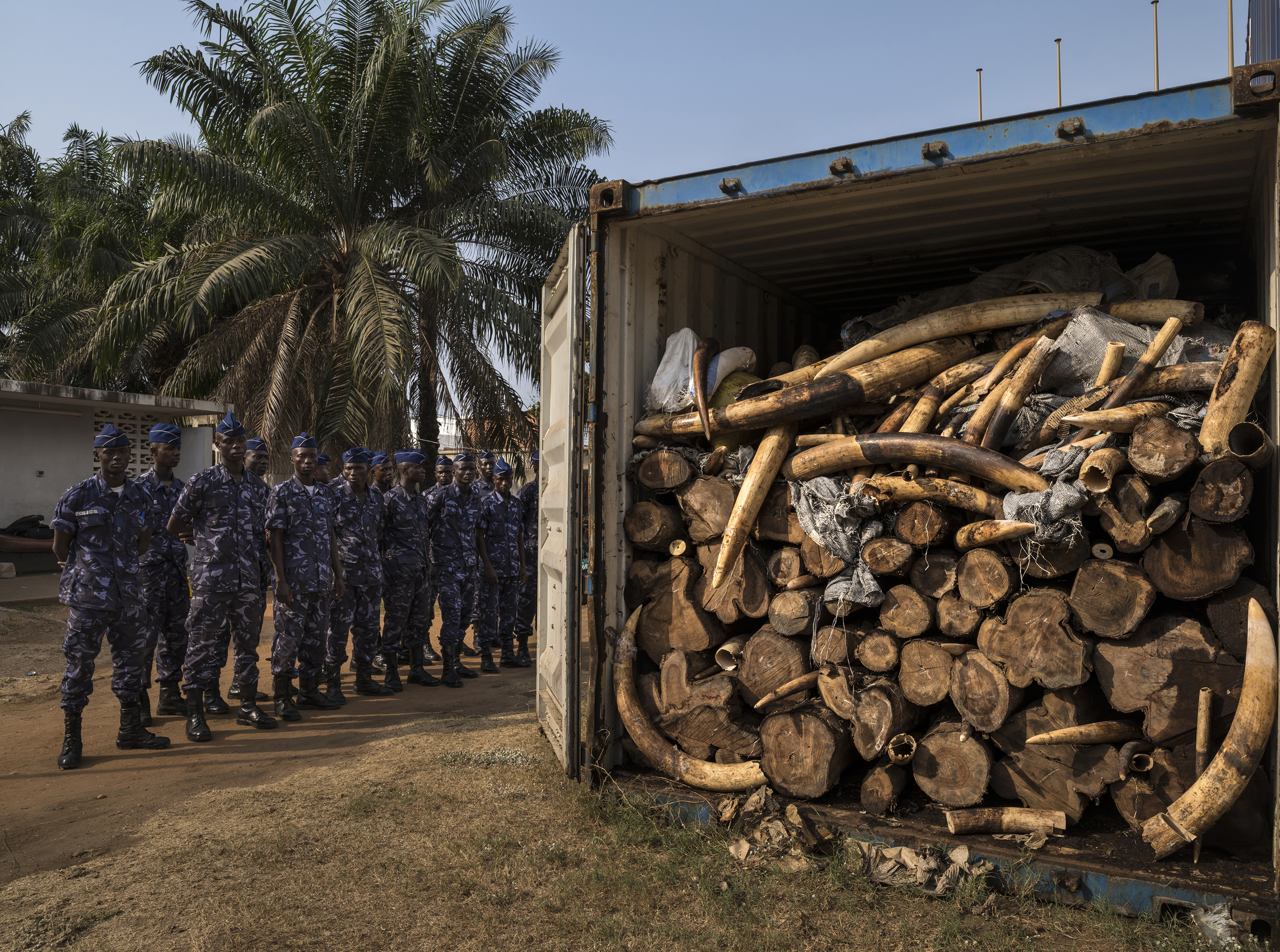 Michael Oryem, 29, poached elephant with the Lord’s Resistance Army (LRA), operating mainly in the Garamba National Park in DRC. He says he was asked by LRA leader Joseph Kony to take ivory to him in Darfur, Sudan, and that the LRA trades the ivory to the Sudanese Army. Oryem defected from the LRA and helped take Ugandan forces through the border into the Central African Republic to retrieve a stash of ivory he had previously hidden. He is carrying two of the six tusks he hid. (Brent Stirton/Getty Images Reportage for National Geographic) Rangers exhibit their riding skills as they return to base at Zakouma National Park, Chad, after weeks on elephant patrol. The park lost nearly three quarters of its elephants in the decade up to 2011, due to raids by Janjaweed rebels and poachers from Sudan. Since then—with the park under new management—Zakouma rangers, helped by intelligence from nomad groups, have eliminated poaching almost completely. (Brent Stirton/Getty Images Reportage for National Geographic) Ugandan soldiers cross a river while on patrol against the Lord’s Resistance Army close to the border of the DRC. They are on the tracks of an Lord’s Resistance Army contingent which has come from the Garamba National Park in the DRC, where they were poaching elephant. (Brent Stirton/Getty Images Reportage for National Geographic) A shipping container stands open in the port at Lome, Togo, after customs officers had seized four tonnes of illegal ivory, found using new container-scanning technology. DNA evidence linked the ivory to an elephant massacre perpetrated by Seleka rebels in Dzanga Bai, Central African Republic, in 2013. (Brent Stirton/Getty Images Reportage for National Geographic)3. Chameleon Under Pressure