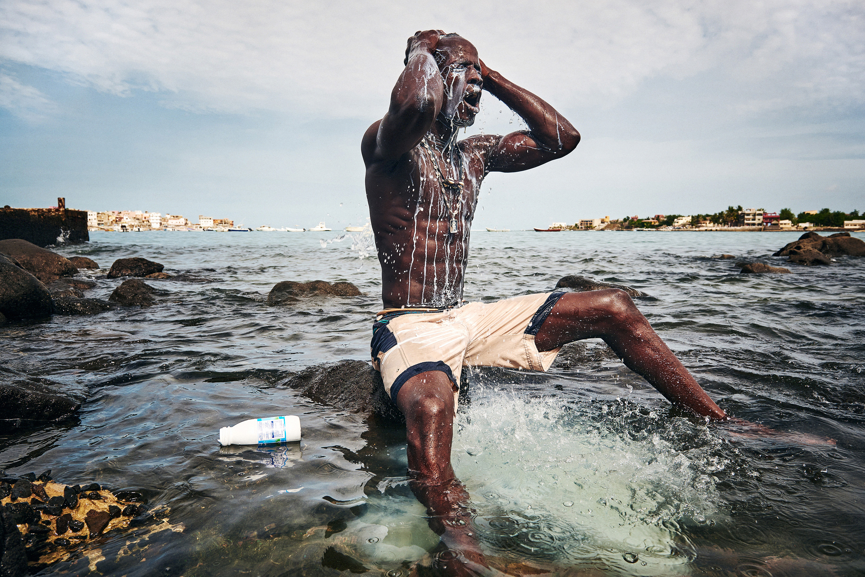 Kherou Ngor, a young wrestling champion, performs a ritual with cow’s milk, to obtain strength. (Christian Bobst) A tournament in the Adrien Senghor Arena in Dakar nears its end. (Christian Bobst) BB Bismi Ndoye defeats Maraka Dji, in a fight at the Demba Diop Stadium. (Christian Bobst) People watch a match held as part of Independence Day celebrations. (Christian Bobst)3. Ebola Survivors Football Club