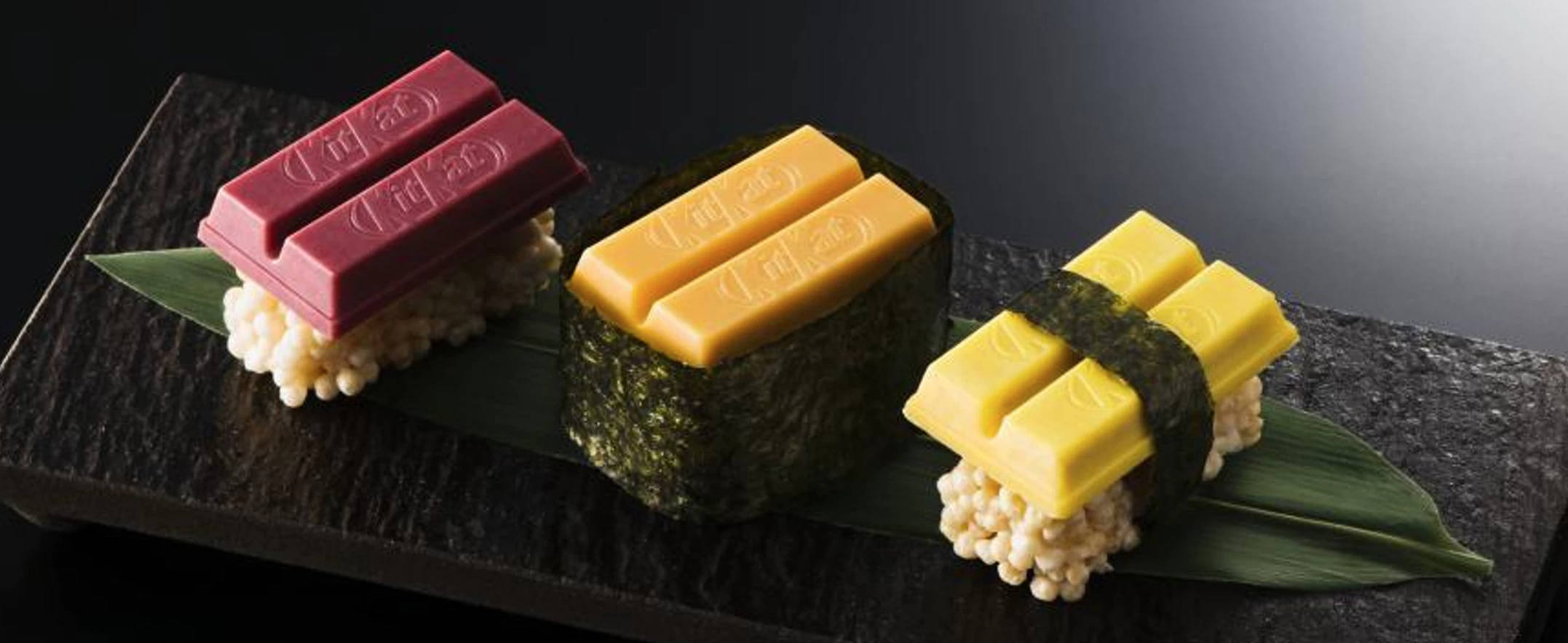 In 2017, CNN reported “Gourmet versions, pioneered by [chef Yasumasa] Takagi, compete with a mind-boggling array of mass-produced flavors that to some palates might border on the bizarre.” You can get Wasabi Kit Kat, pumpkin pudding, adzuki bean sandwich, among others. And now, you can actually order Kit Kat sushi. Nestle wants to commemorate the opening of a new store at Itami Osaka International Airport, so they are offering the candy in three styles: Maguro (tuna), Tamago (egg), and Uni (sea urchin).