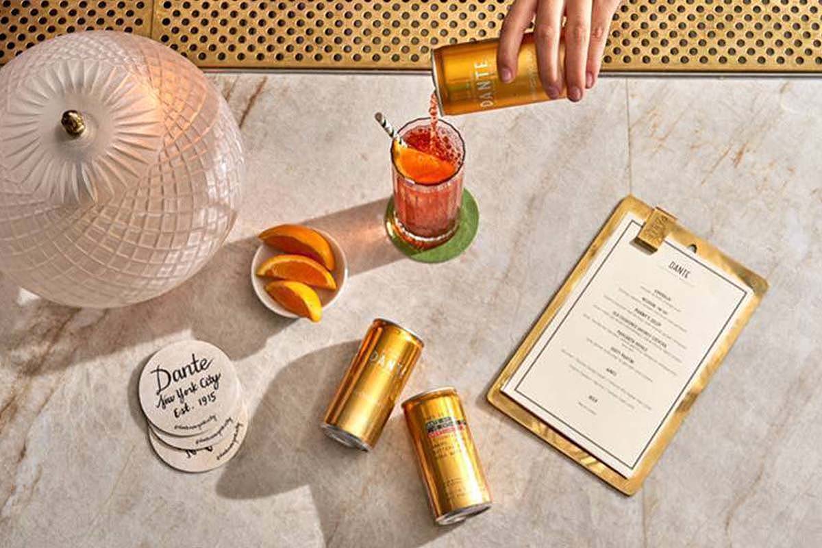Dante just teamed up with F!VE DRINKS CO. for a line of canned drinks, available here nationwide (where allowed) and on liquor store shelves in New York. Among the first releases: