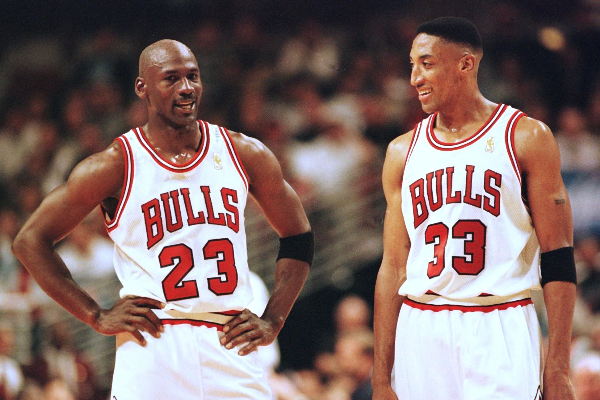 Michael Jordan and Scottie Pippen of the Chicago Bulls.