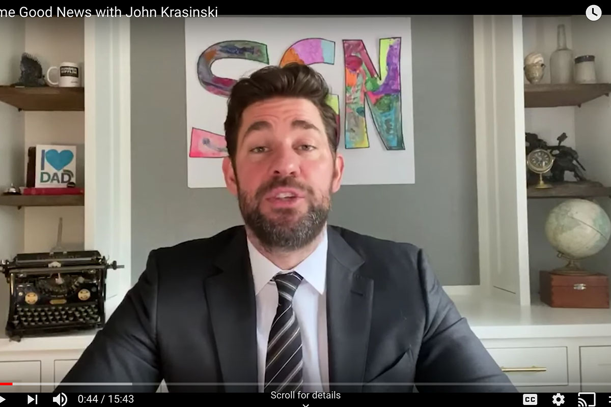 That’s the title of John Krasinski’s new online show, which debuted Sunday on the actor’s new YouTube channel. “For years now, I’ve been wondering why isn’t there a news show dedicated entirely to good news?” Krasinski wonders from what looks like his living room.