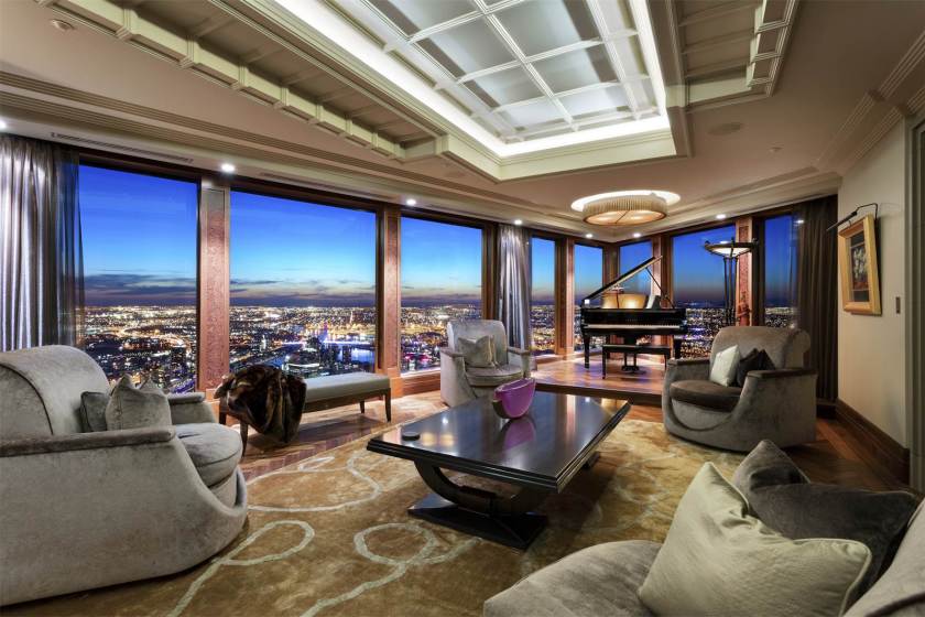 The penthouse in Melbourne’s Eureka Tower, which has the highest public vantage point in a building in the Southern Hemisphere (and is also the 15th tallest residential building in the world), is now for sale. Rising 975 feet in the air, the tower provides stunning views of the cosmopolitan city, and its penthouse spans the entire 86th floor.