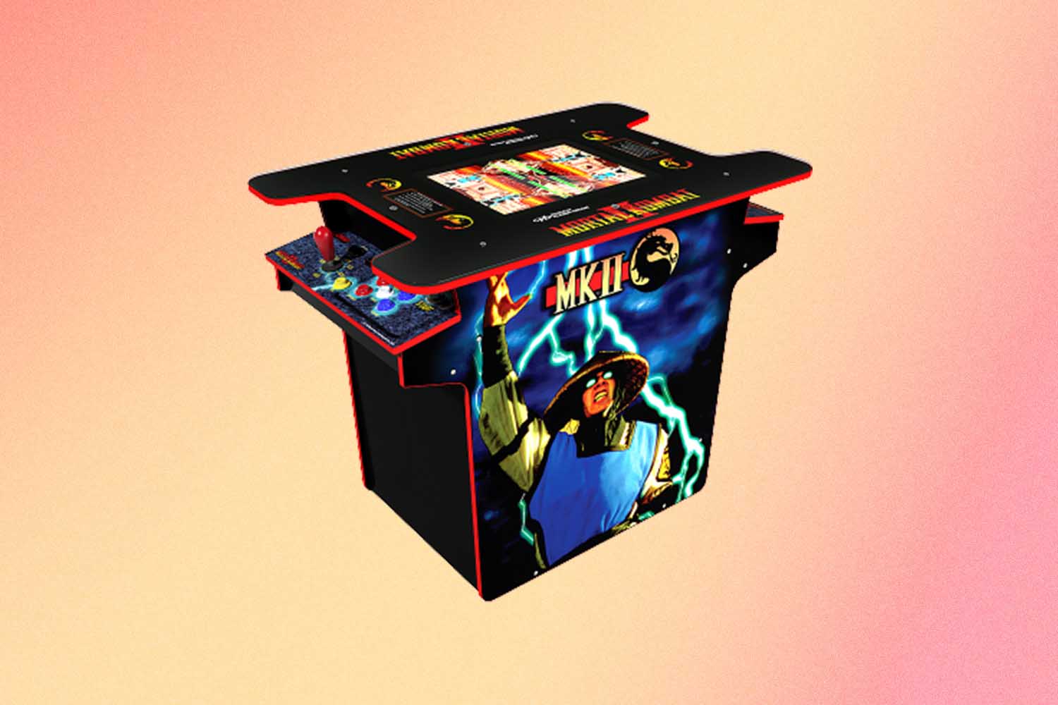 These retro titles aren’t limited to one game, though. The gaming table version of Mortal Kombat, for instance, also features Mortal Kombat II, Ultimate MK3, Joust, Defender, Rampage, Gauntlet, Sinistar, Rootbeer Tapper, Klax, Gorf and Toobin. And this two-player setup even has a clear cover top to protect the unit from accidental spills.