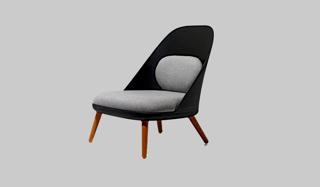 Designed by design firm Admiraal Studio, the back and frame of this modern lounger are constructed from injection-molded polypropylene plastic and paired with wooden legs and soft fabric to balance the smooth form of plastic.