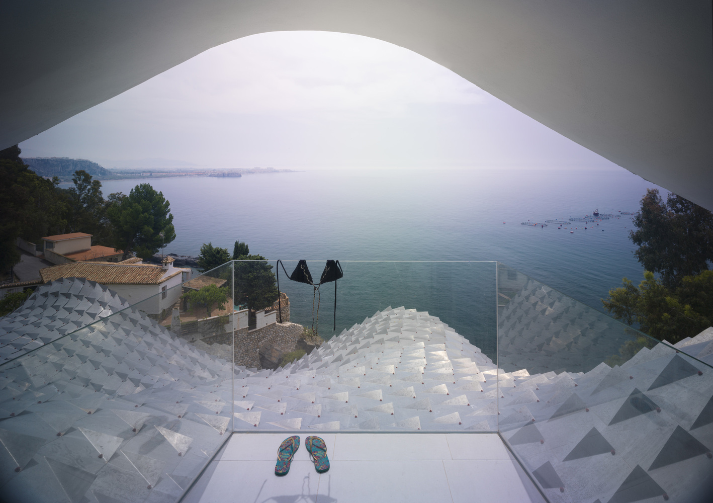 Built into a hillside overlooking the Mediterranean Sea, this Gaudiesque home is almost like a bespoke, man-made cave. Casa del Acantilado, designed by GilBartolome Architecture, is split into two levels following the slope of the landscape. The bottom floor is comprised of a terraced living area and an outdoor patio with a pool with the bedrooms on the floor above. Learn more about the home here. Also watch an aerial video and take a look at some still images from Jesus Granada, showcasing Casa del Acantilado.