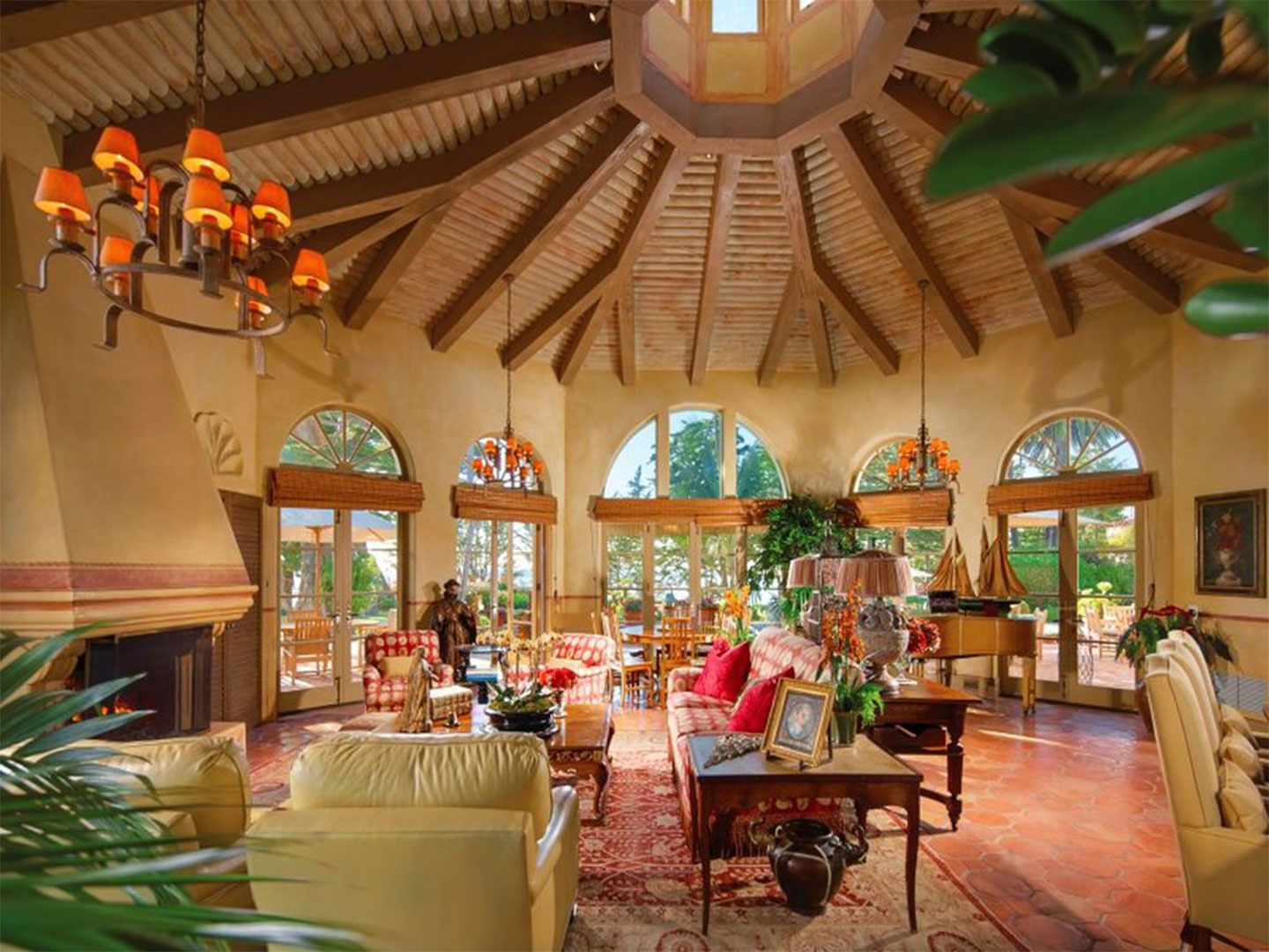 Sitting on the sprawling 5.45 acre property is a 9,000 square foot main house with four bedrooms and seven baths, a one-bedroom,one-bath pool pavilion,one-bath guest house and two guest apartments.