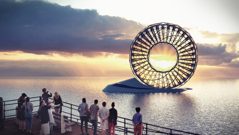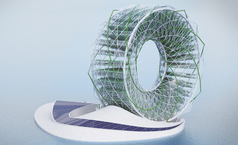 Designed by Alexandru Predonu, the Ring Garden is a rotating desalination plant and aeroponics farm that harvests seawater, solar energy, and carbon dioxide to produce clean drinking water, food crops, and biomass for animal feed. Predonu’s design was a finalist in this year’s “Land Art Generator Initiative: Santa Monica” competition, and his visually striking concept might be exactly what California needs to curb its water use; as of this writing, 80 percent of the state’s water supply goes towards agriculture.