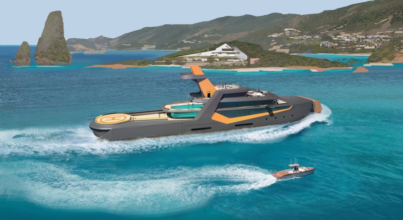 The proposed 216-foot superyacht will feature seven decks and a twin azimuth thrusting drive system, with a total power of 3000 kW, allowing for a cruising speed of 15 knots and a range in excess of 5,000 nautical miles.