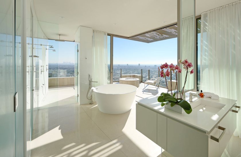 One example of his masterwork is his design of the $23 million “Collingwood House” Hollywood Hills home, a three bedroom/three bathroom, located just a hop, skip, and a jump away from the Sunset Strip. In an interview with Robb Report, Landry said that his design group studied the home closely, and one of the first obstacles was the property’s long, steep driveway. At the top is a huge area for one’s luxury auto du jour (or rotating cast), while just below it, is a spacious garage for one’s collections. But the latter isn’t just a luxury condo for your cars—it can also be cleared out and used as an entertainment space.