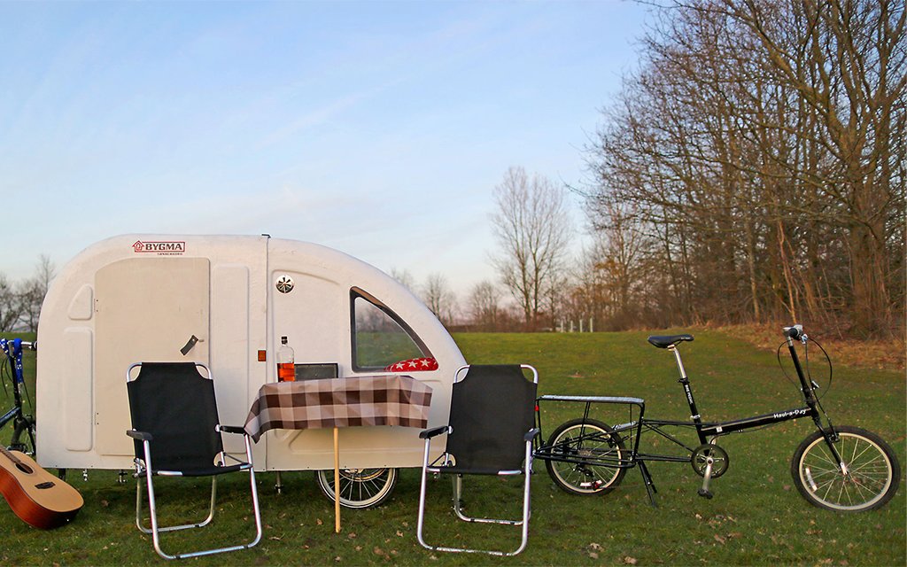 A new bicycle-friendly sleeper for your extended two-wheeled sojourns. It can comfortably sleep two adults and fit four at mealtime.