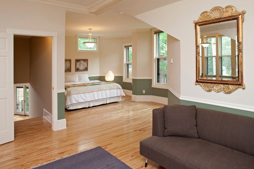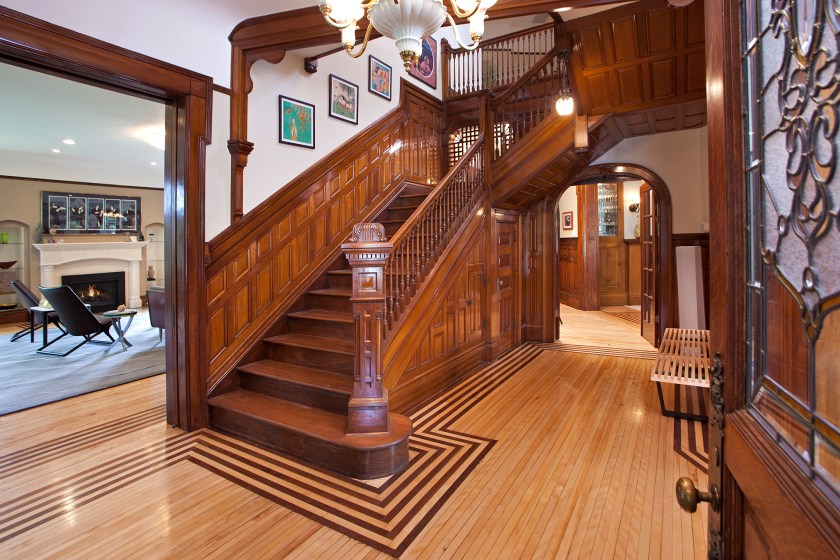 Built in 1900, the spacious mansion was renovated to include a chef’s kitchen, with four ovens and granite island; five fireplaces; two laundry rooms; and a cozy family room, which opens up to a backyard and terrace. The upper levels feature bedroom suites; with the master bedroom boasting a sitting room, walk-in closet, and spa-style bath with separate shower and tub. Complementing the mansion’s contemporary renovations are vintage touches like ornate woodwork, glass transom accents, and bay windows.