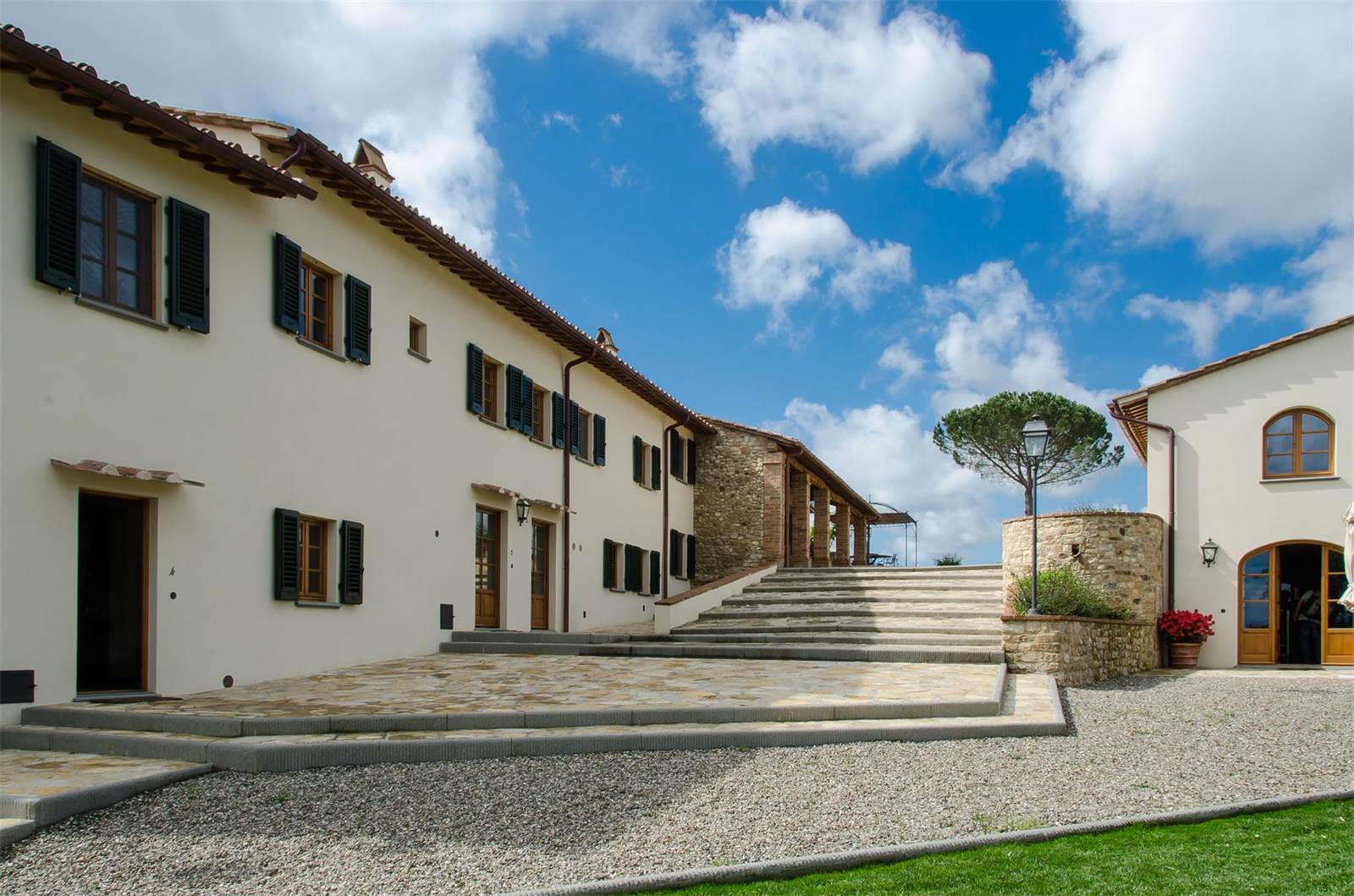 Dating back to the 13th century, this Classico Renaissance villa is one of the finest examples of traditional Tuscan estates in Chianti Classico. About a 30-minute drive from Florence, the San Casciano in Val Di Pesa property has approximately 20,000 square feet of living space stretched across two luxurious private villas, three Atelier apartments, and four Fatoria Marzocco apartments. The villas’ stylish interiors were recently renovated with local craftsmen and fine Tuscan materials, giving them a quintessential Italian feel.
