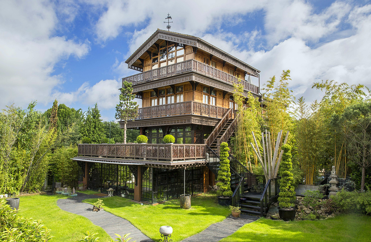 From the outside, this 130-year-old Swiss-style chalet looks like a quirky old-fashioned property. However, inside it’s the ultimate luxury home with a heated indoor beach, gold-covered bathroom, and £500,000 kitchen.