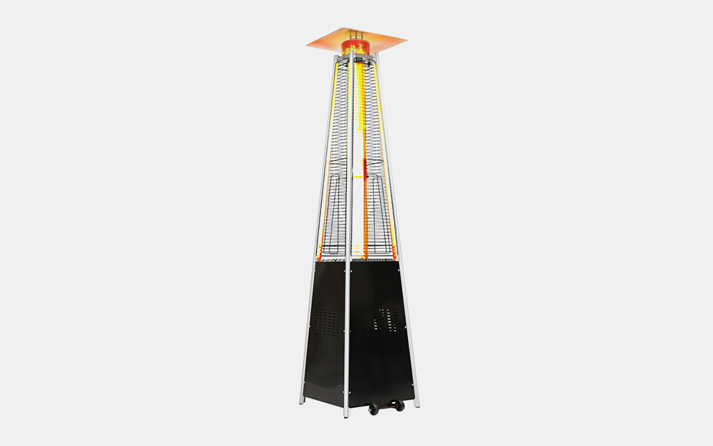 There’s no reason you have to sacrifice style for function when it comes to your outdoor heater, as evidenced by Suncrown’s Pyramid Flame Propane Patio Heater. The heater features an anti-tilt automatic shut-off mechanism, meaning that in the event the heater tilts to 45 degrees, all gas flow will shut down, and you can rest easy.