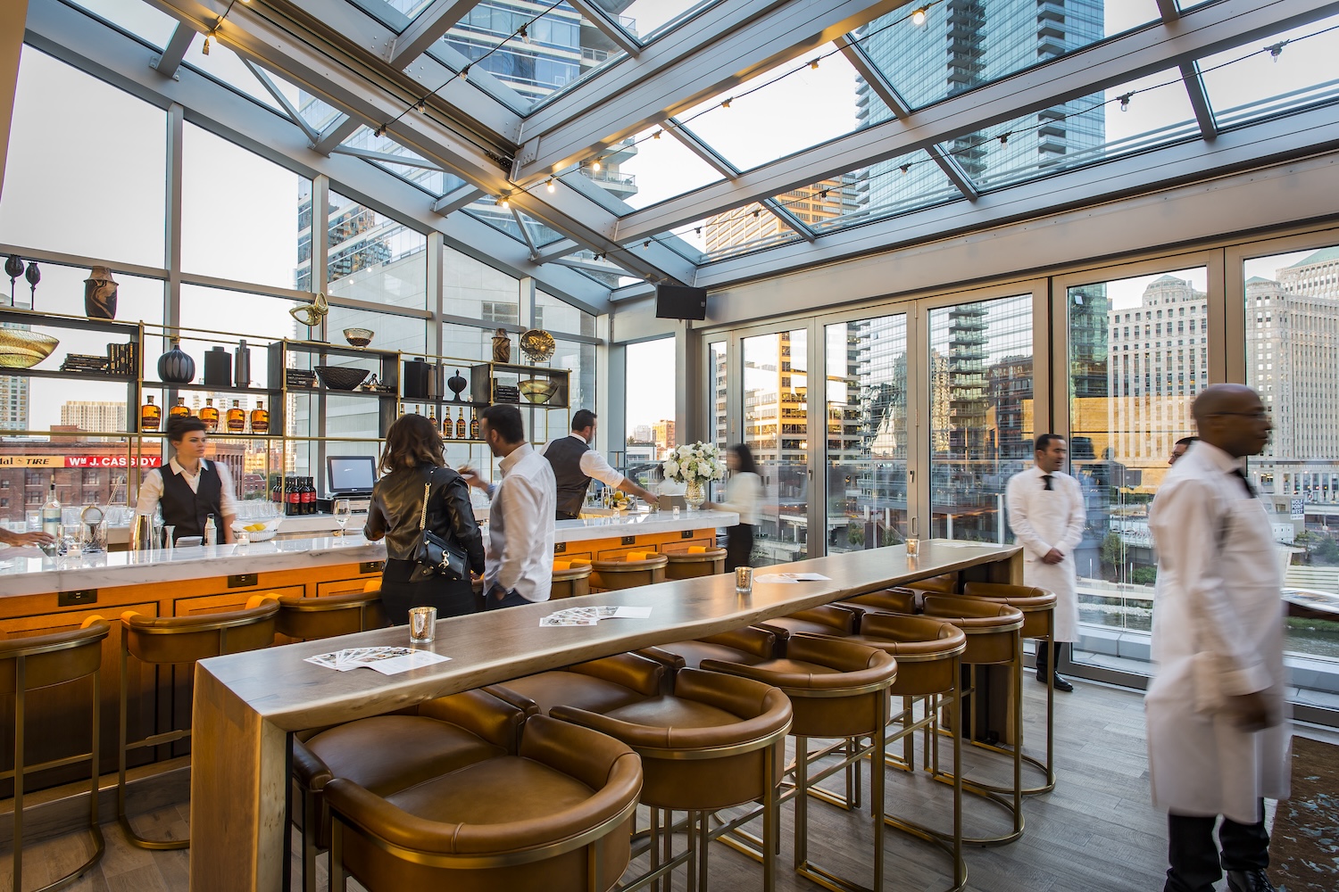This chic offshoot of the classic Gibson’s Steakhouse brand offers views of the Chicago River in nearly all directions. The multi-level Italian steakhouse has an all-weather retractable rooftop, which is an ideal space for enjoying antipasti and a glass of wine. Sample the Wagyu beef tartare or cacio e pepe arancini, plus plentiful seafood platters filled with oysters, shrimp, lobster and more. Peruse the long list of cocktails, spritzes and beers to wash it all down.