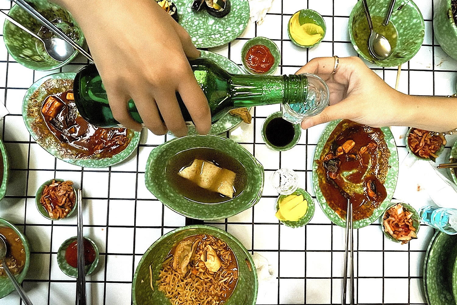 1. Drink with food, and never drink alone. “The spirit of Korean drinking is about abundance and community,” says Jun.