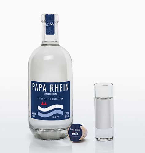 “Papa Rhein has been around for five years,” Becker says. “The beer brandy is made from the alcohol of Gaffel Kölsch.” Specifically, it’s made from water combined with Rhinish malting barley and hops extract. Becker notes that it can be drunk as a shot, but he also recommends mixing it with lemon, sugar syrup, Mandarin orange and mint.