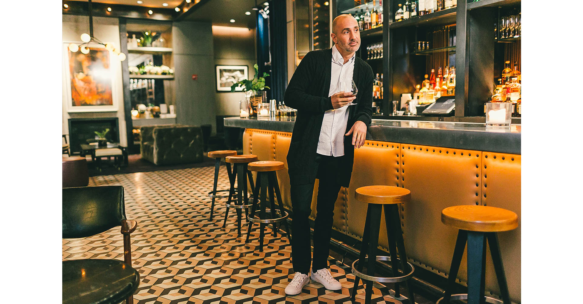 Cozy cocktail den tucked inside one of Manhattan’s hippest auberges where museum-worthy artworks line the walls and the bartenders pour a mean negroni.