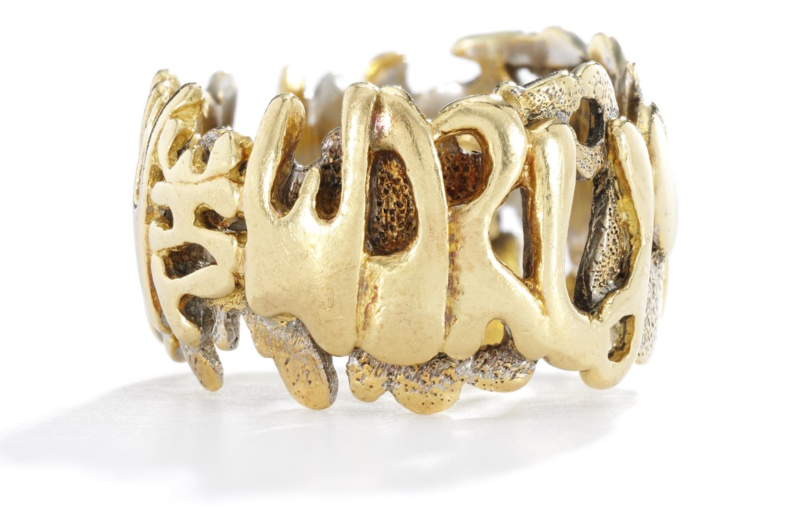 The popularity of On Her Majesty’s Secret Service led to demand for the de Temple-designed ring. An edition of fifty rings similar to the ones appearing in the film but using the phrase “All the Love in the World” was produced. And while it may not be quite as thrilling as the world of international espionage, de Temple’s life offers plenty of excitement as well: there are not many other acclaimed jewelers who can say that they grew up touring with the Ringling Brothers Circus.