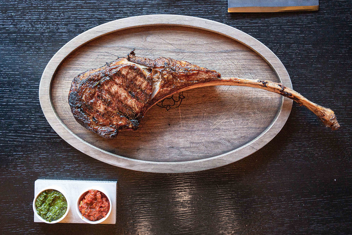 - 2 (48-oz.) tomahawk ribeye steaks (Manion uses Creekstone Farms dry-aged prime beef)
