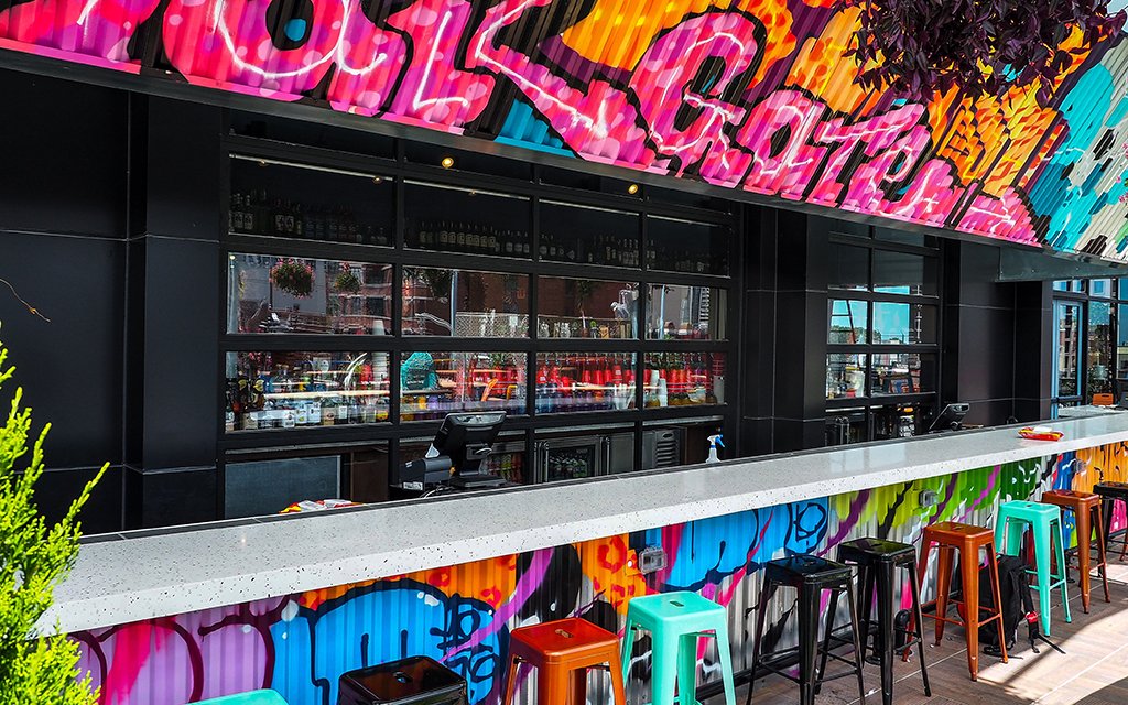 You’re dining on: The team behind The Fifty/50 Restaurant Group pairs tailgating games with elevated bar food and unique cocktails and beers. Try your hand at mini golf, bocce, bags or giant Jenga, plus bouncy houses and mechanical bull rides. Fuel up with steak kebabs and housemade nacho cheese Doritos, and wash it down with regular and large-format cocktails like the Gin & Chronic with gin, Green Chartreuse, CBD oil, lime and triple sec, plus tableside keg or cooler service, and a La Michoacana paleta cart with boozy and non-alcoholic ice pops.