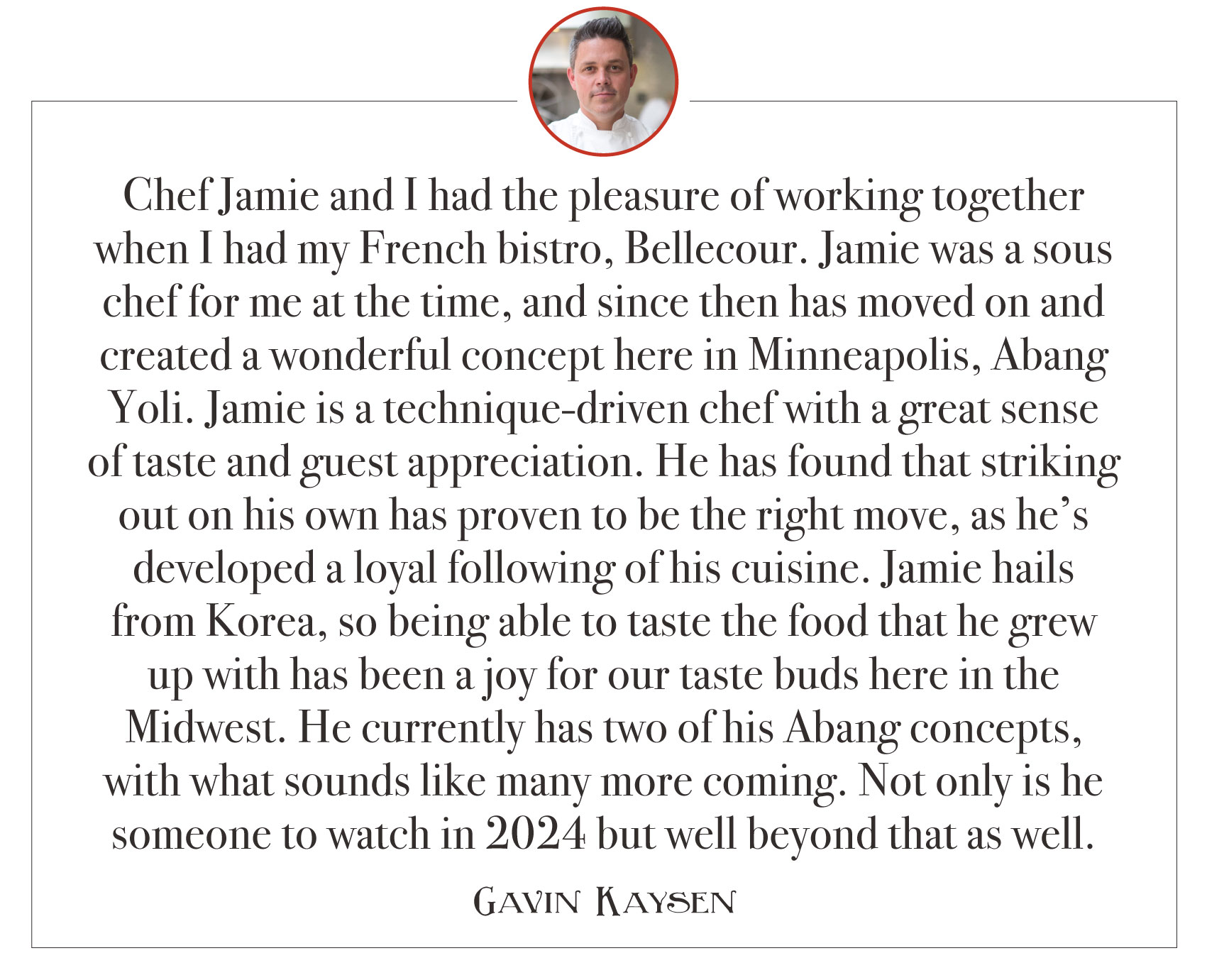 What is your biggest culinary goal for 2024? I would like to continue to nurture the culture of our restaurant and inspire another generation of cooks with our interpretation of Korean cuisine.