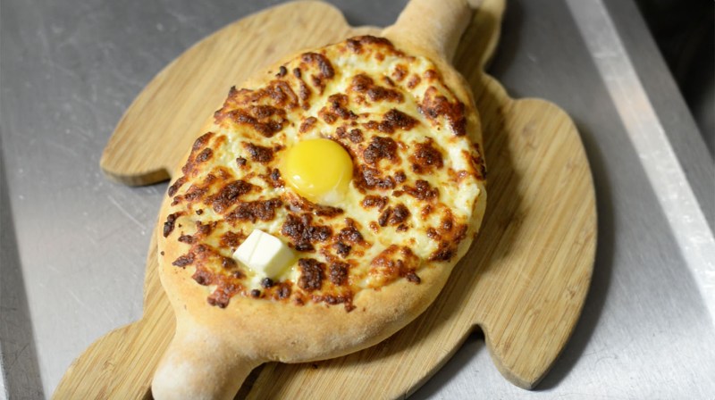 Hence Cheeseboat. The restaurant, which is just over a year old, came about when Davitashvili and her friends started going to Georgian restaurants in New York, and Davitashvili noticed that the places would do things in a way that wasn’t actually done in Georgia anymore. They were very traditional, but Davitashvili didn’t think it translated well to people who were not accustomed to it. So she decided to start a place that would showcase her country’s food in a way that people would understand — and more importantly, enjoy. The namesake is a classic Georgian dish: an open-faced khachapuri. It is a boat-shaped hunk of bread, with a deep pool of melted sulguni cheese in the middle, and though it sounds like it would be 2,000 calories, it adds up to be about the same as a large margarita pizza: somewhere between 400–700 calories, depending on size and toppings. The classic boat has an egg cracked in the middle after the baking is done. Other menu items include dumplings, soups, dolma (stuffed cabbage rolls), elarji (Georgian cornmeal w/ mozzarella and feta cheese), and more.