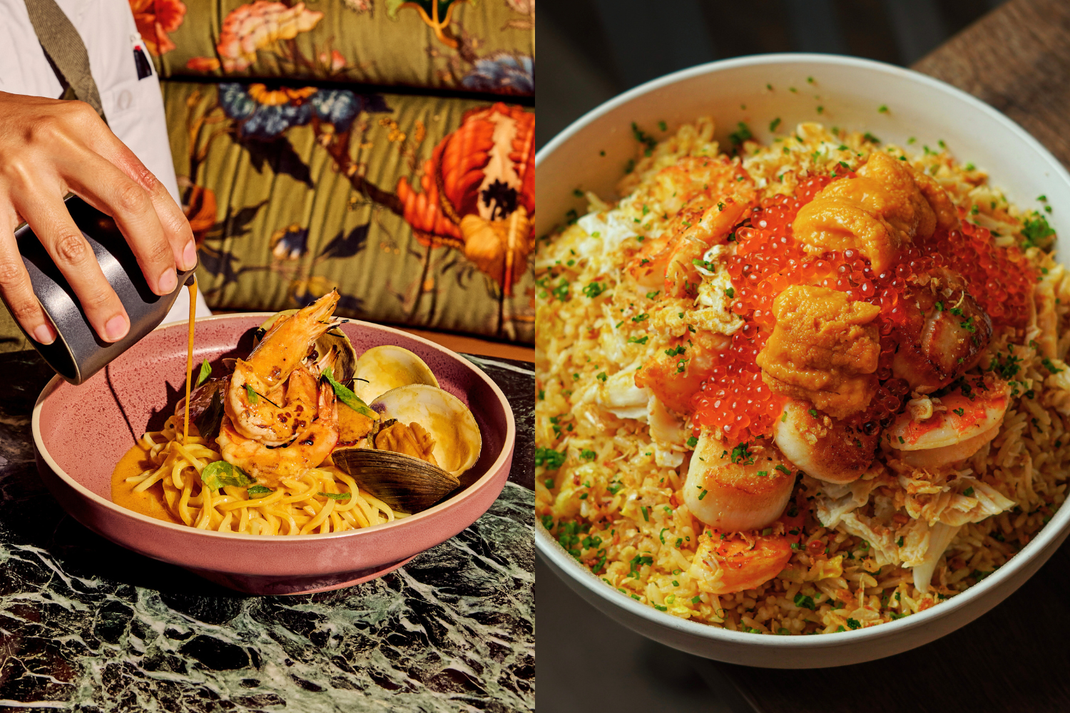 There’s also a ton of excitement happening in Austin, Texas. Siti serves up wild scallops drenched in a playful galangal and coconut laksa. Chef Laila Bazahm’s rich sambal striped bass is grilled in banana leaves, nodding to Singaporean hawkers. Then there’s vibrant Lao’d Bar, where the bright, tangy flavors of Laotian cuisine shine in chef Bob Somsith’s nam khao (crispy fried rice) and waterfall ribeye lahb, a juicy, herbal steak laap (minced meat salad).