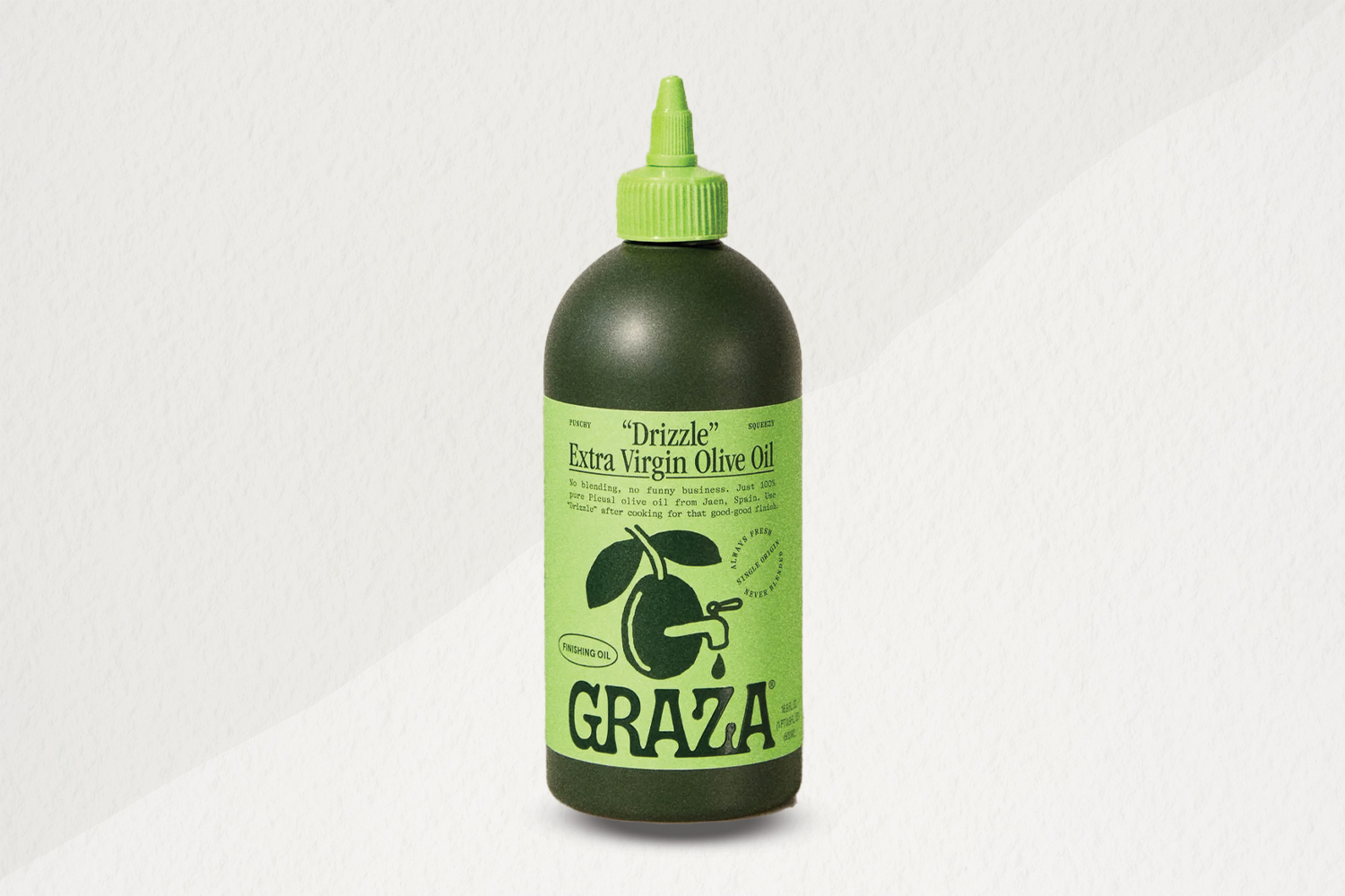 Drizzle is Graza’s finishing oil, and it’s made from the same Spanish Picual olives, but they are harvested earlier than the fruit that goes into Sizzle. Our tasters found it bright and fruity — and much milder than Sizzle. One even said it’s “subtle but nice.” Again, everyone appreciated the nozzle and “good bottle design.”